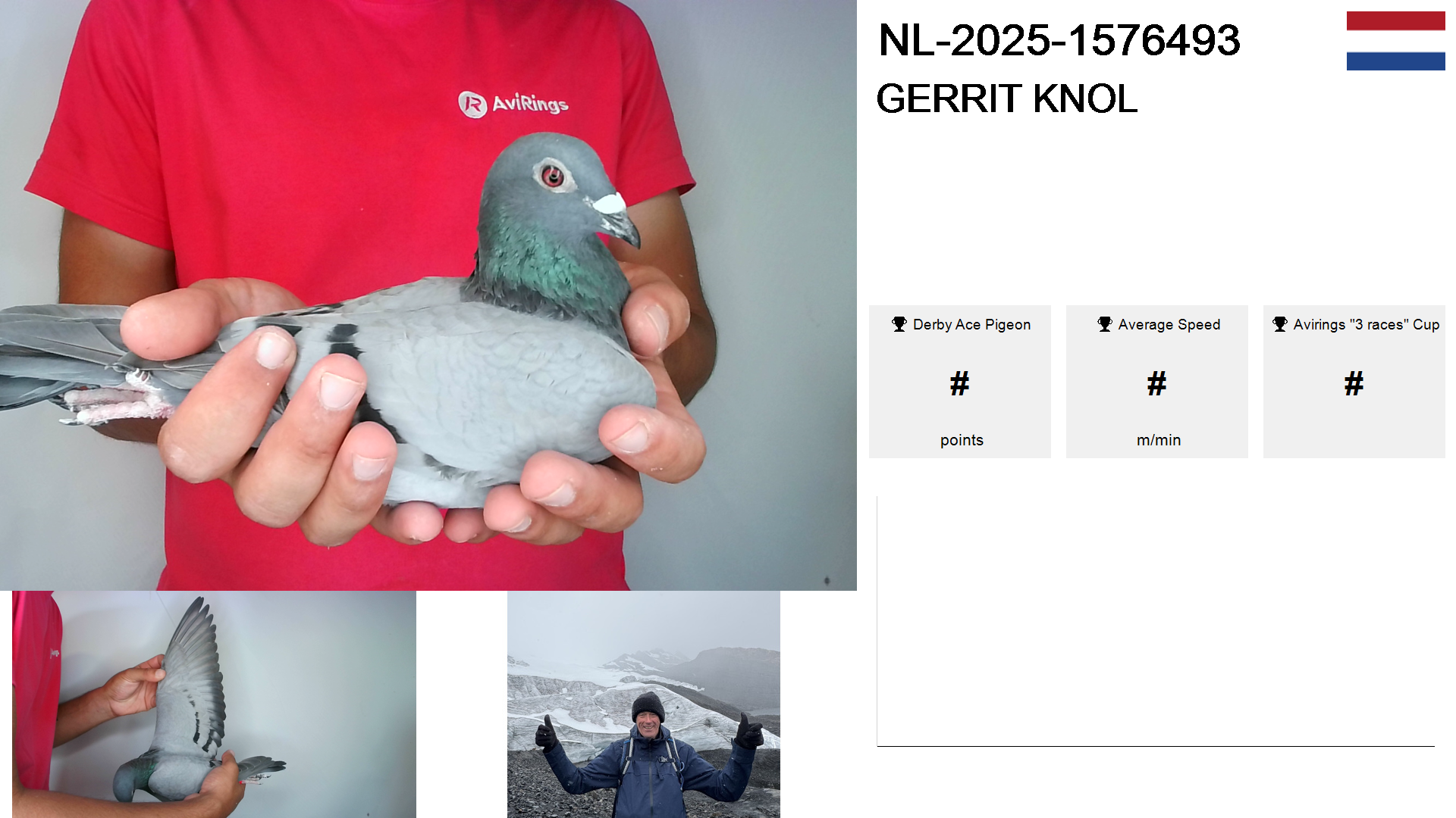 | Race | Position | Number of pigeons | Percent | Speed | Distance |