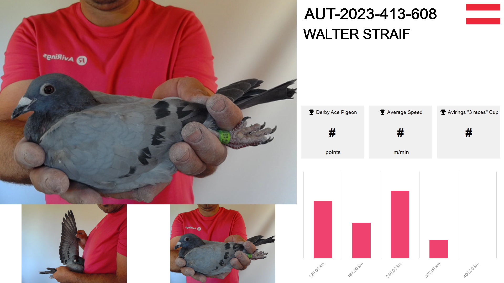 | Race | Position | Number of pigeons | Percent | Speed | Distance |