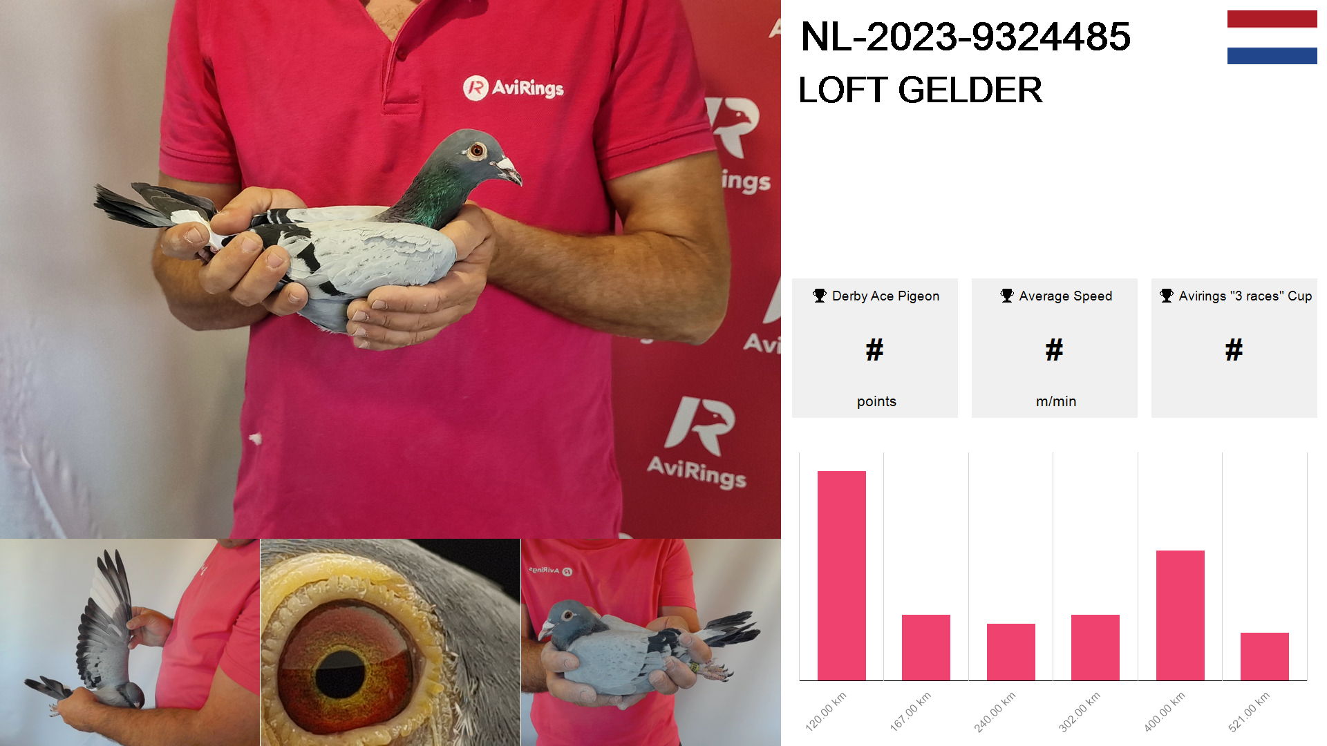 | Race | Position | Number of pigeons | Percent | Speed | Distance |