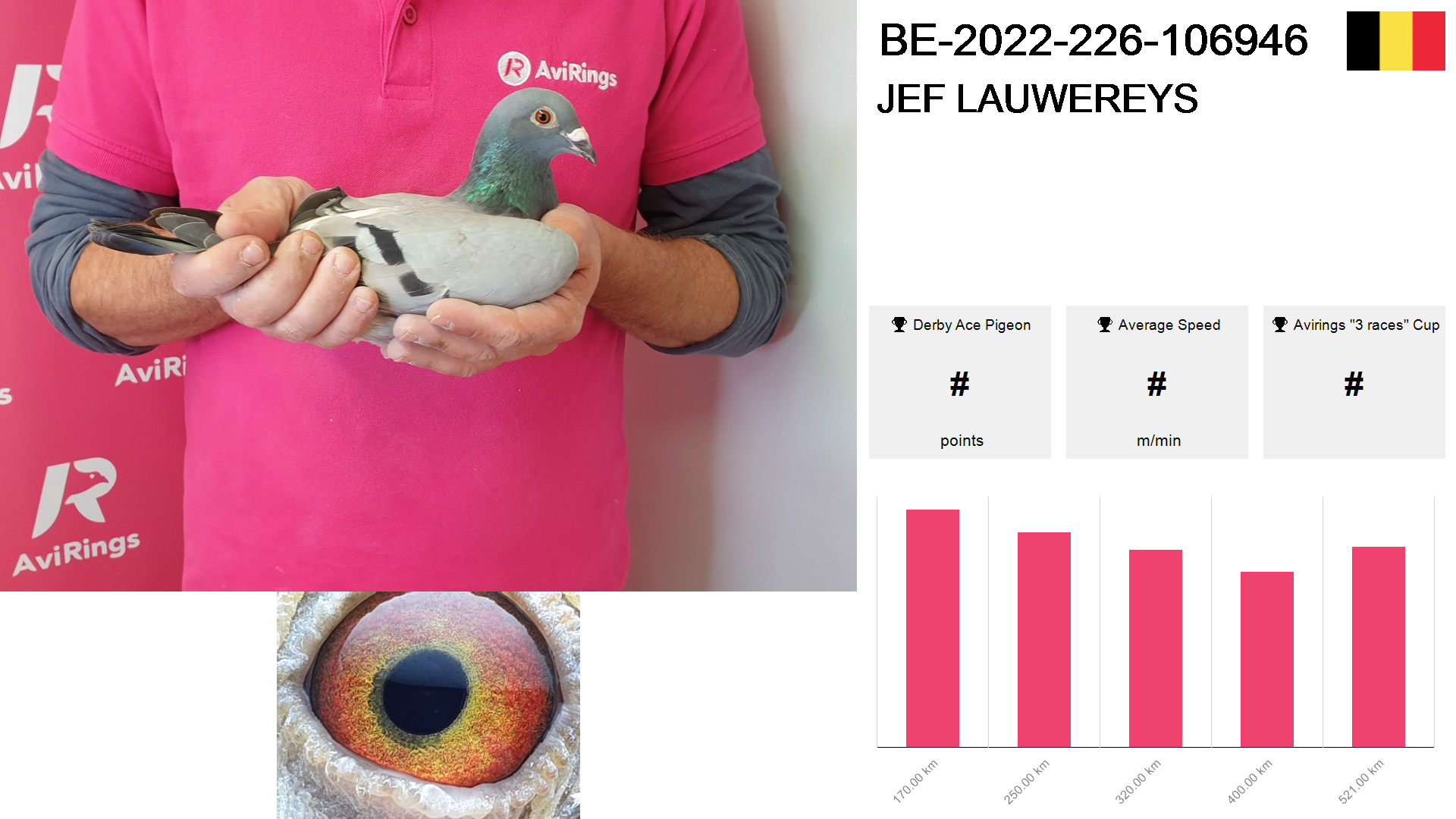 | Race | Position | Number of pigeons | Percent | Speed | Distance |