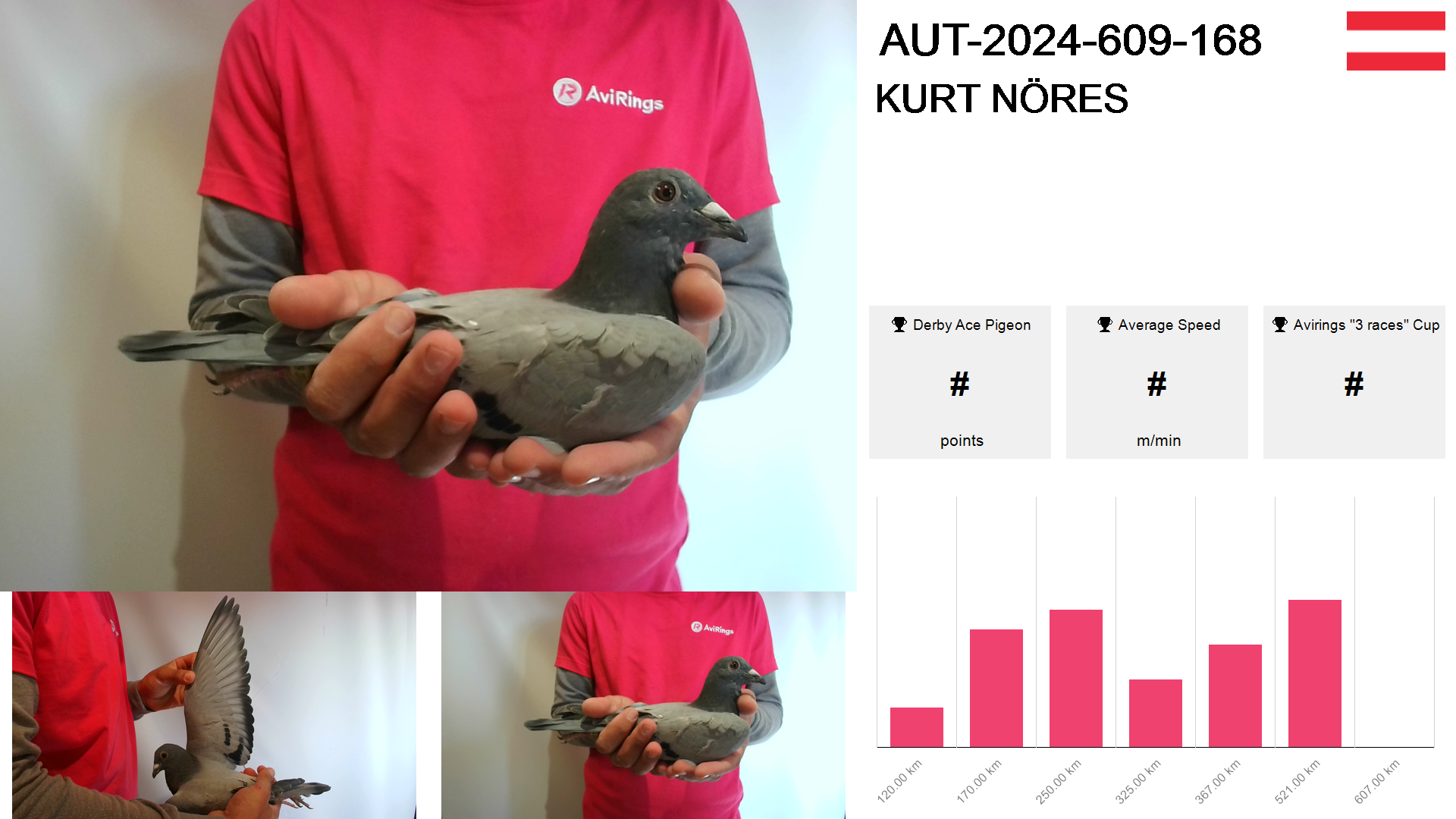 | Race | Position | Number of pigeons | Percent | Speed | Distance |