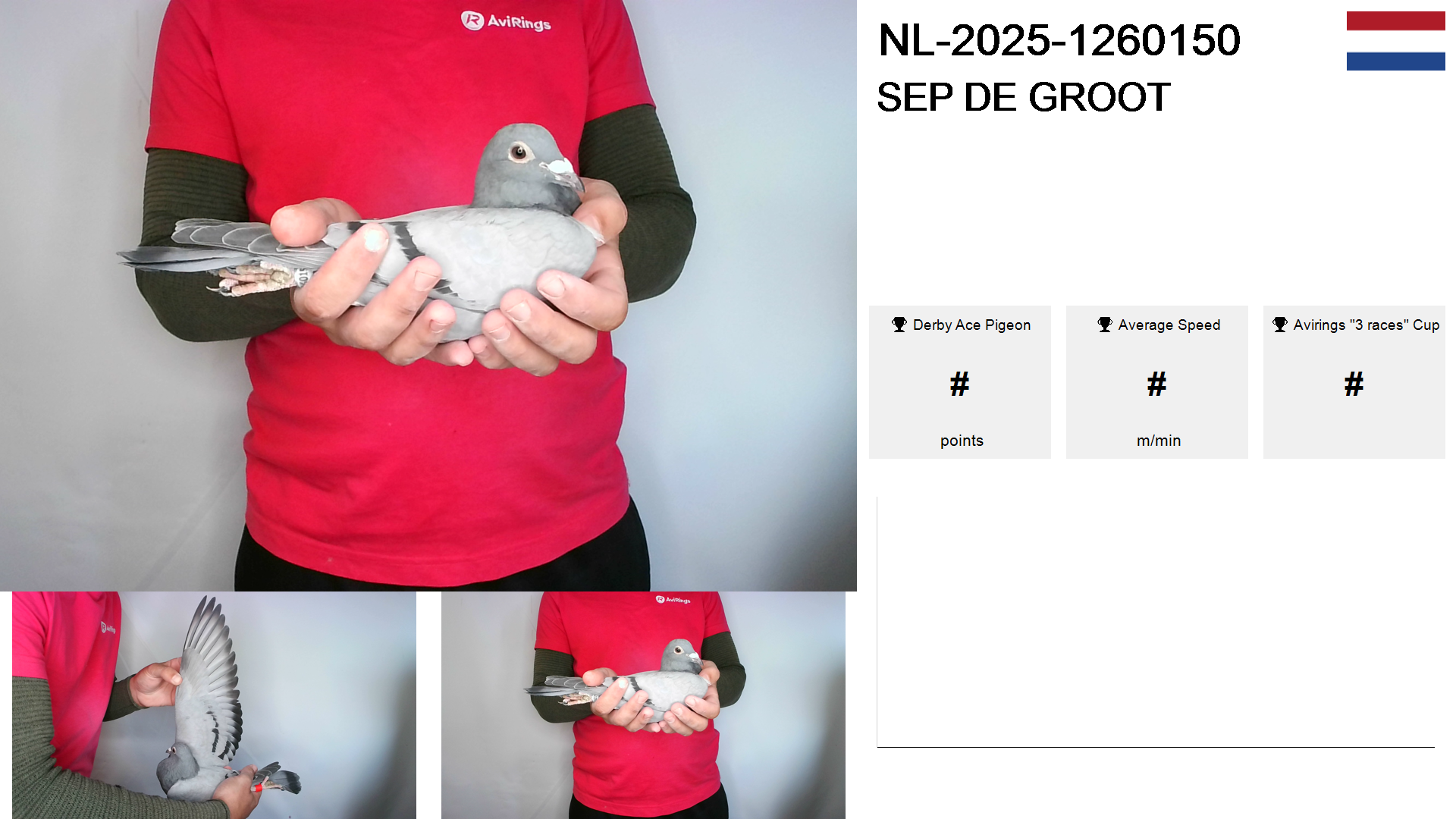 | Race | Position | Number of pigeons | Percent | Speed | Distance |
