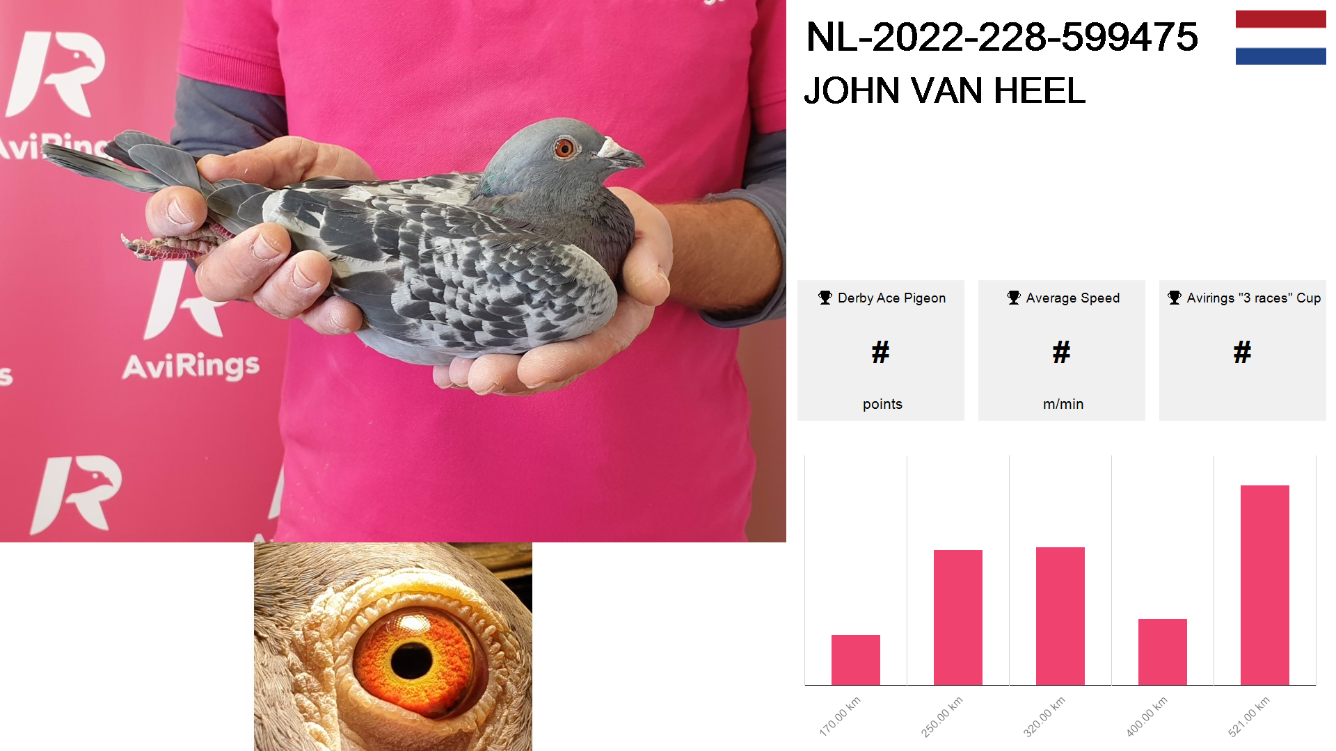 | Race | Position | Number of pigeons | Percent | Speed | Distance |