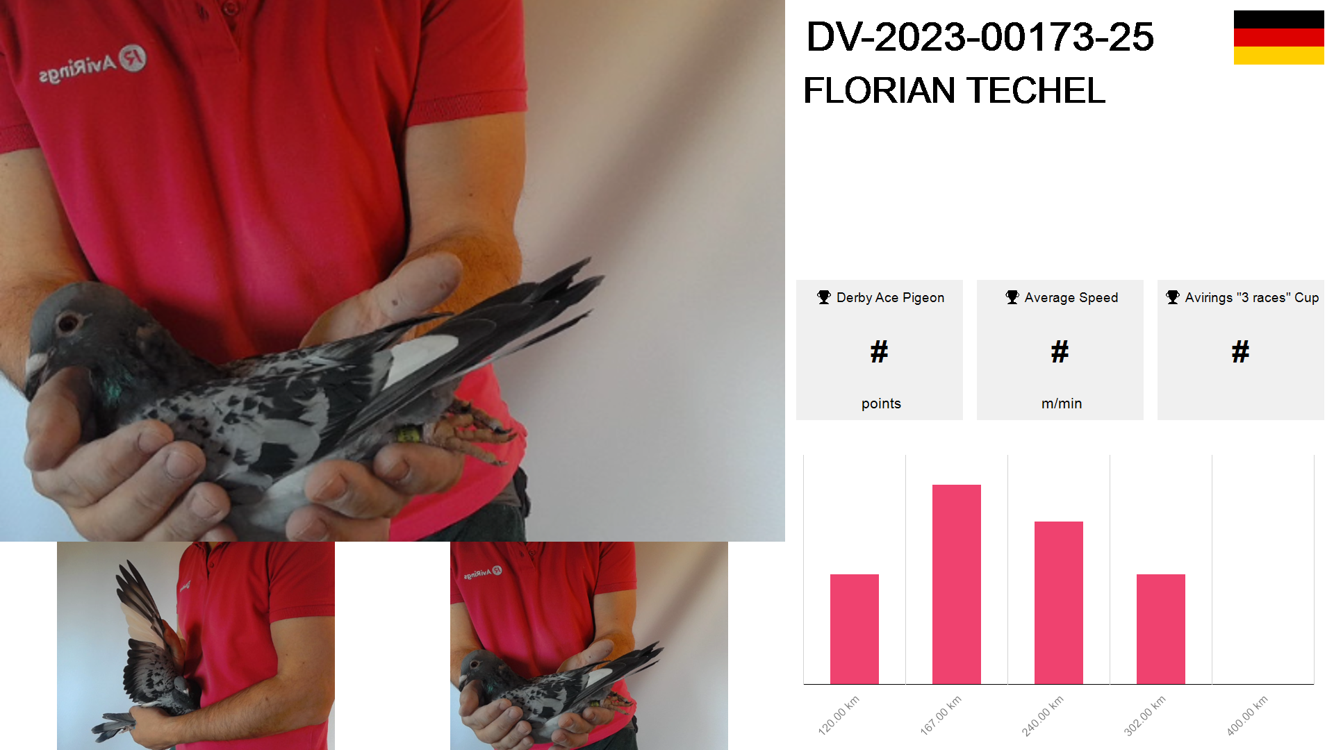 | Race | Position | Number of pigeons | Percent | Speed | Distance |