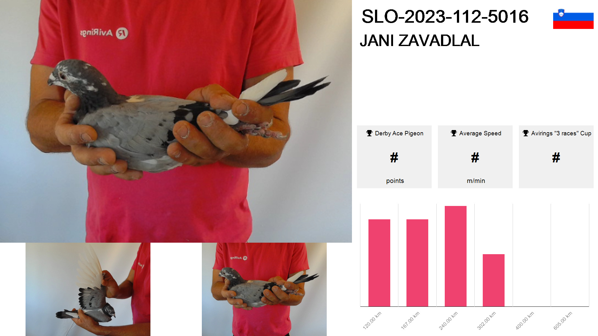 | Race | Position | Number of pigeons | Percent | Speed | Distance |