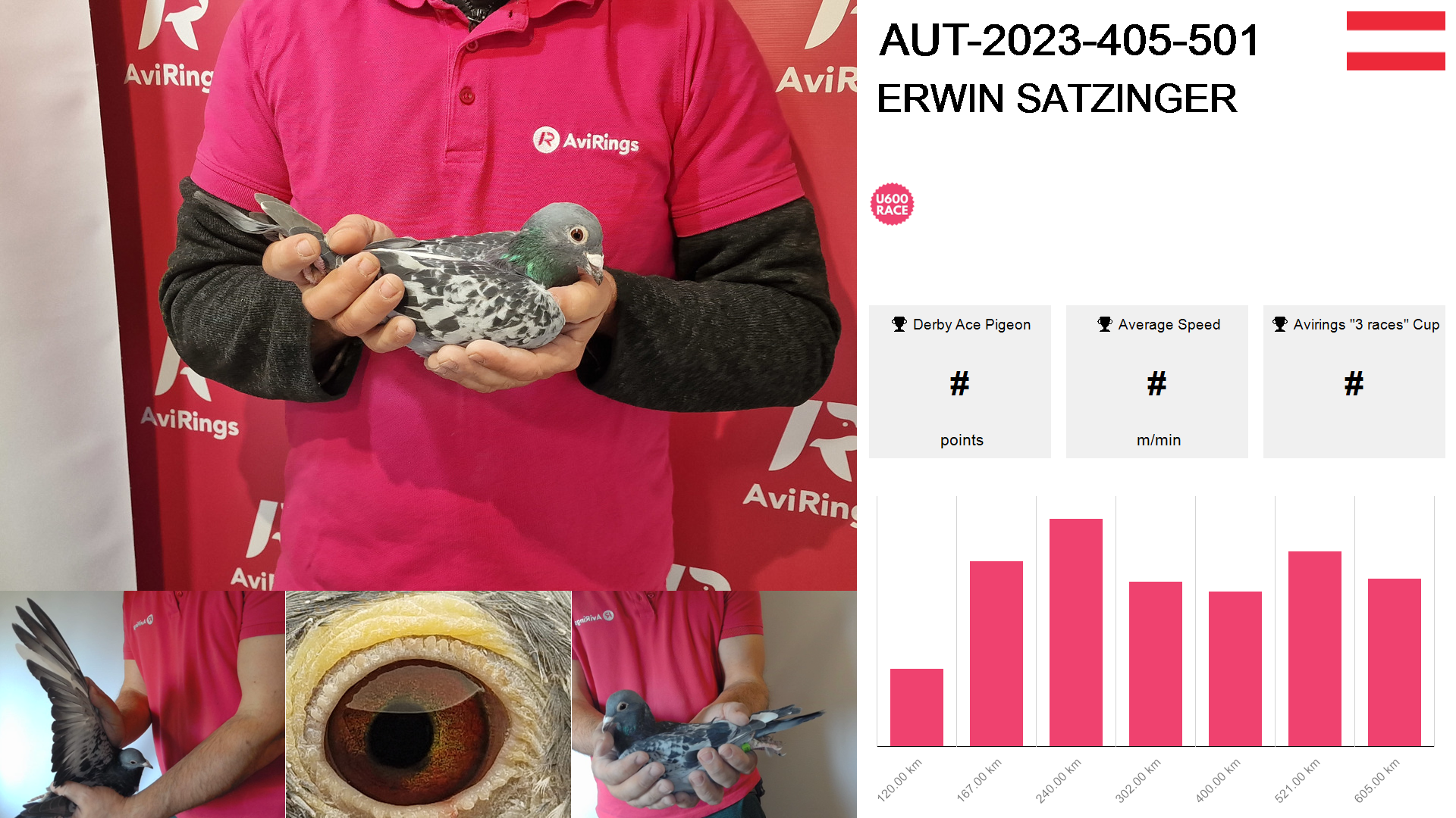 | Race | Position | Number of pigeons | Percent | Speed | Distance |