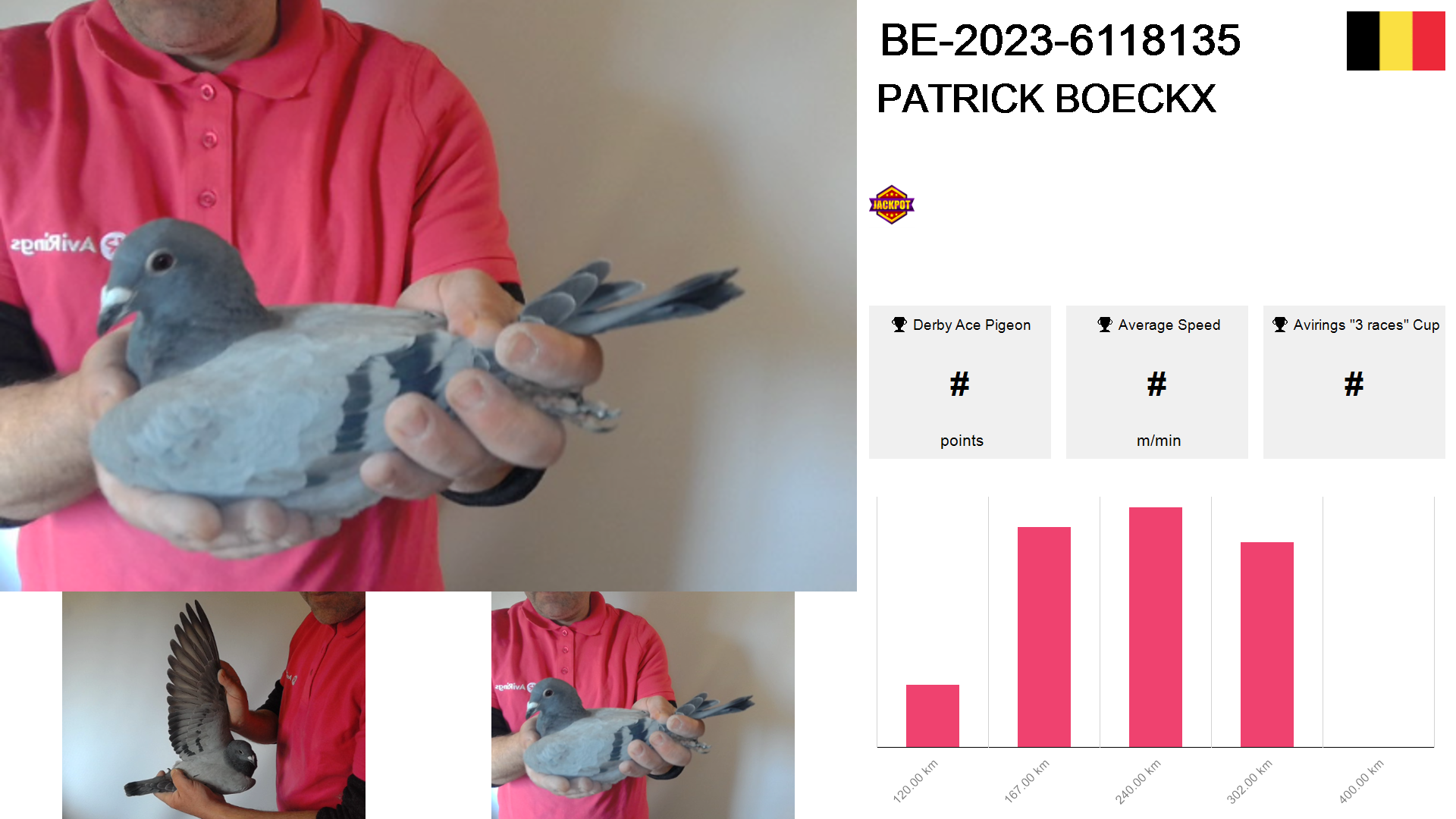 | Race | Position | Number of pigeons | Percent | Speed | Distance |