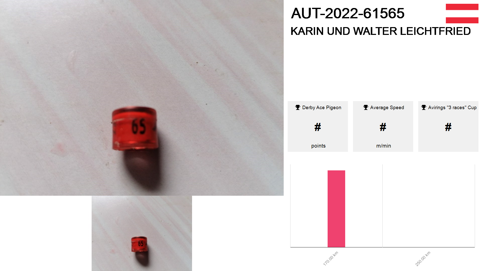 | Race | Position | Number of pigeons | Percent | Speed | Distance |