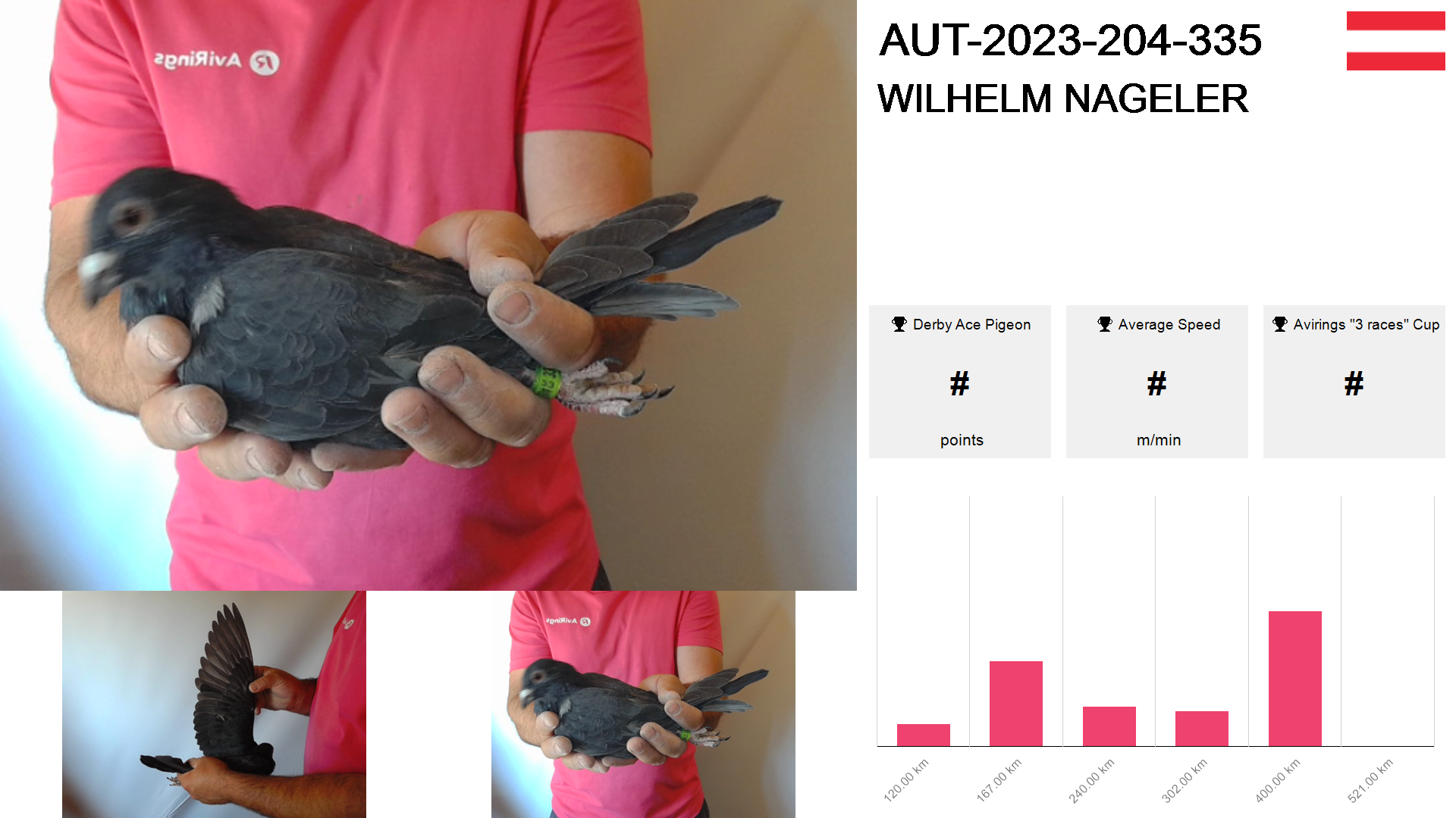 | Race | Position | Number of pigeons | Percent | Speed | Distance |