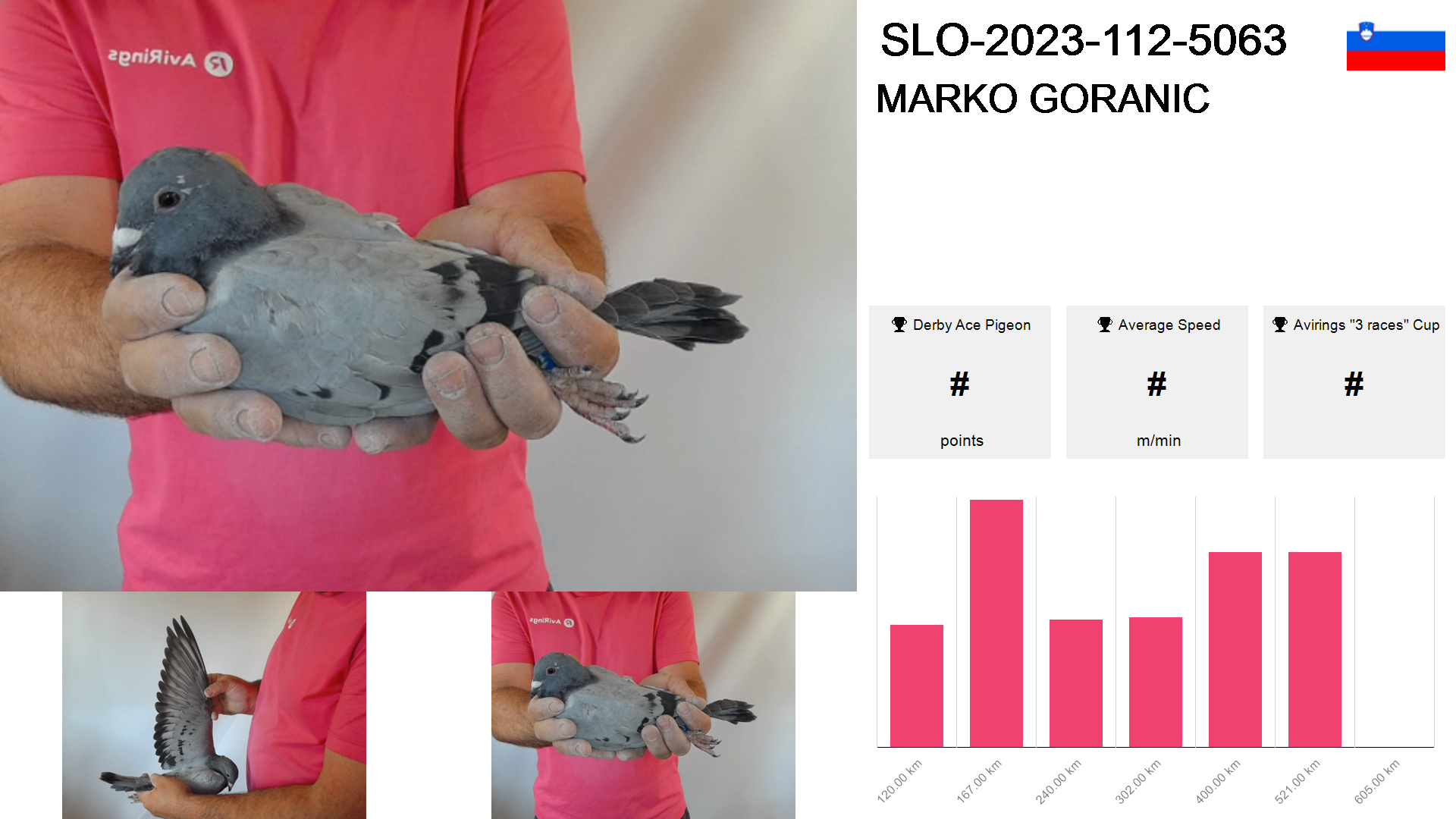 | Race | Position | Number of pigeons | Percent | Speed | Distance |