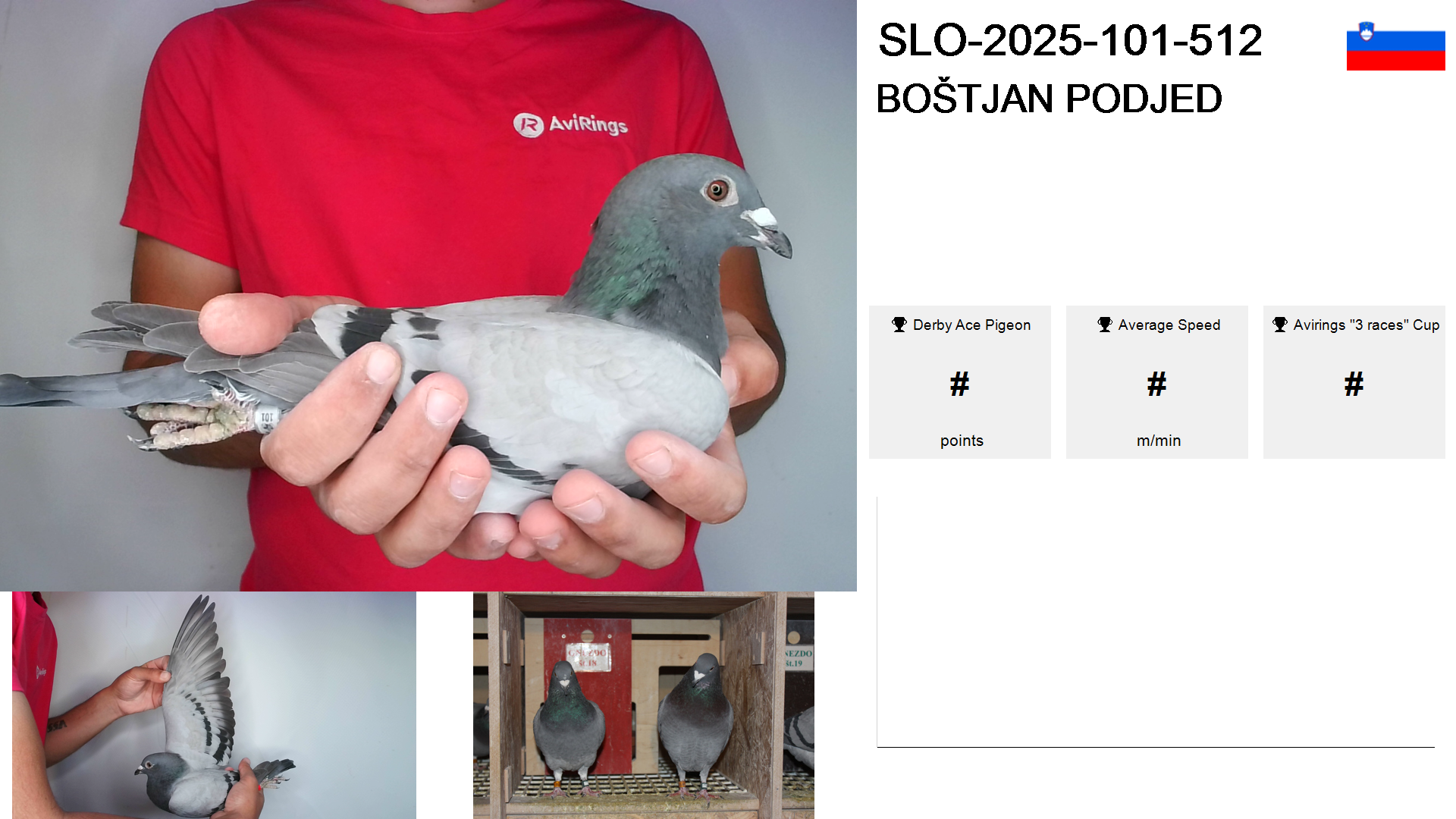 | Race | Position | Number of pigeons | Percent | Speed | Distance |
