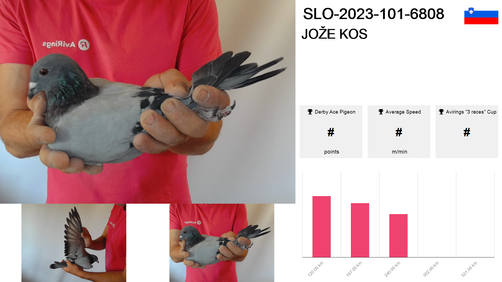 | Race | Position | Number of pigeons | Percent | Speed | Distance |
