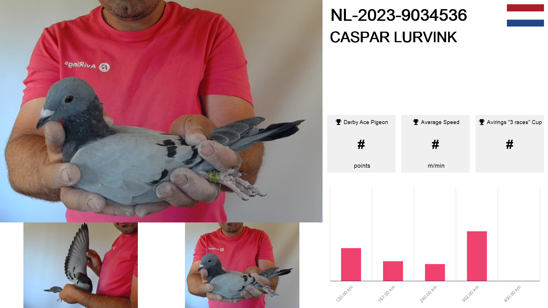 | Race | Position | Number of pigeons | Percent | Speed | Distance |