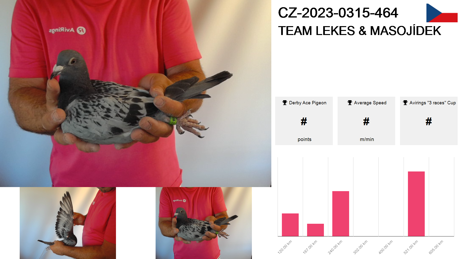 | Race | Position | Number of pigeons | Percent | Speed | Distance |