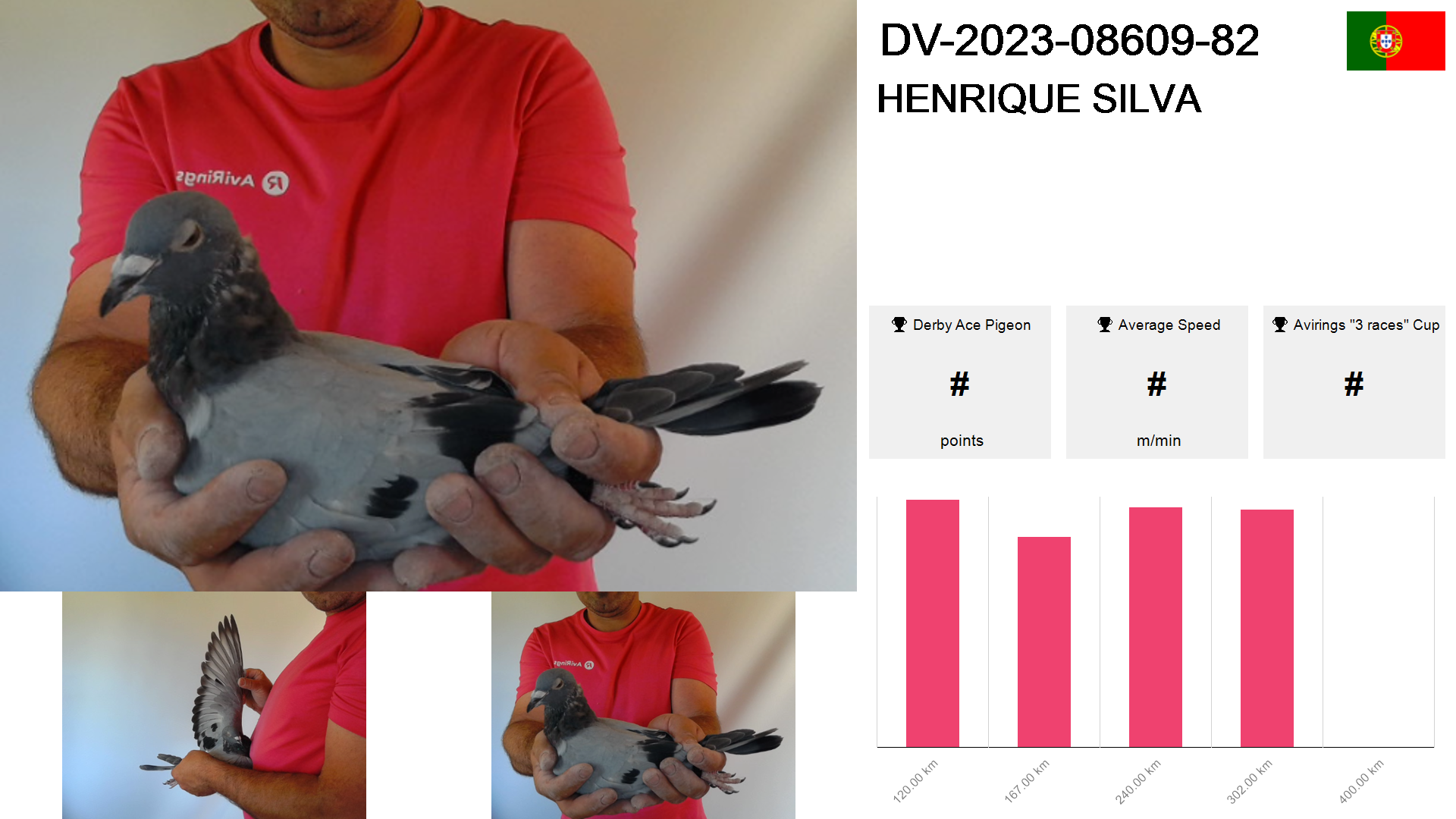 | Race | Position | Number of pigeons | Percent | Speed | Distance |