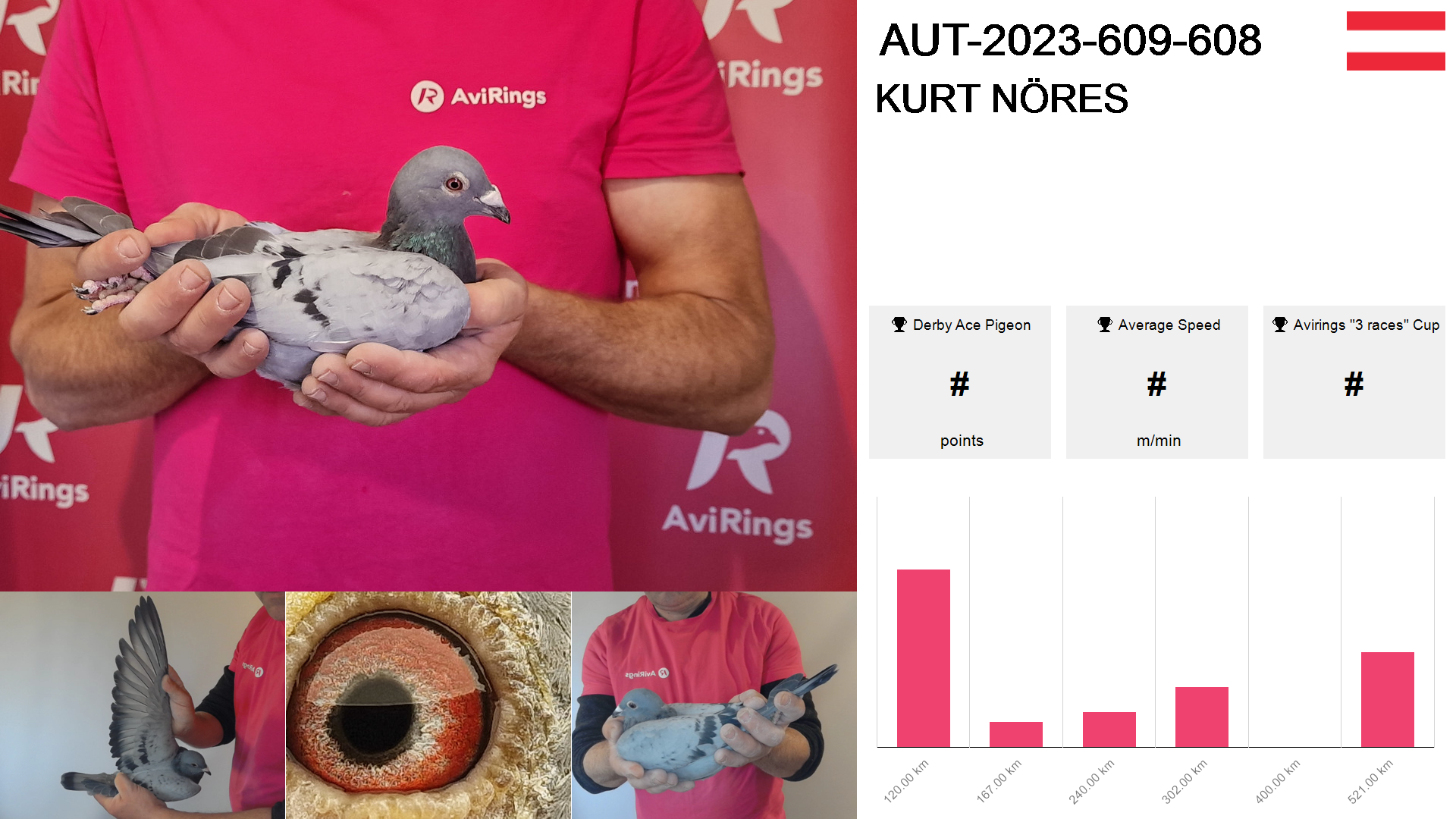 | Race | Position | Number of pigeons | Percent | Speed | Distance |