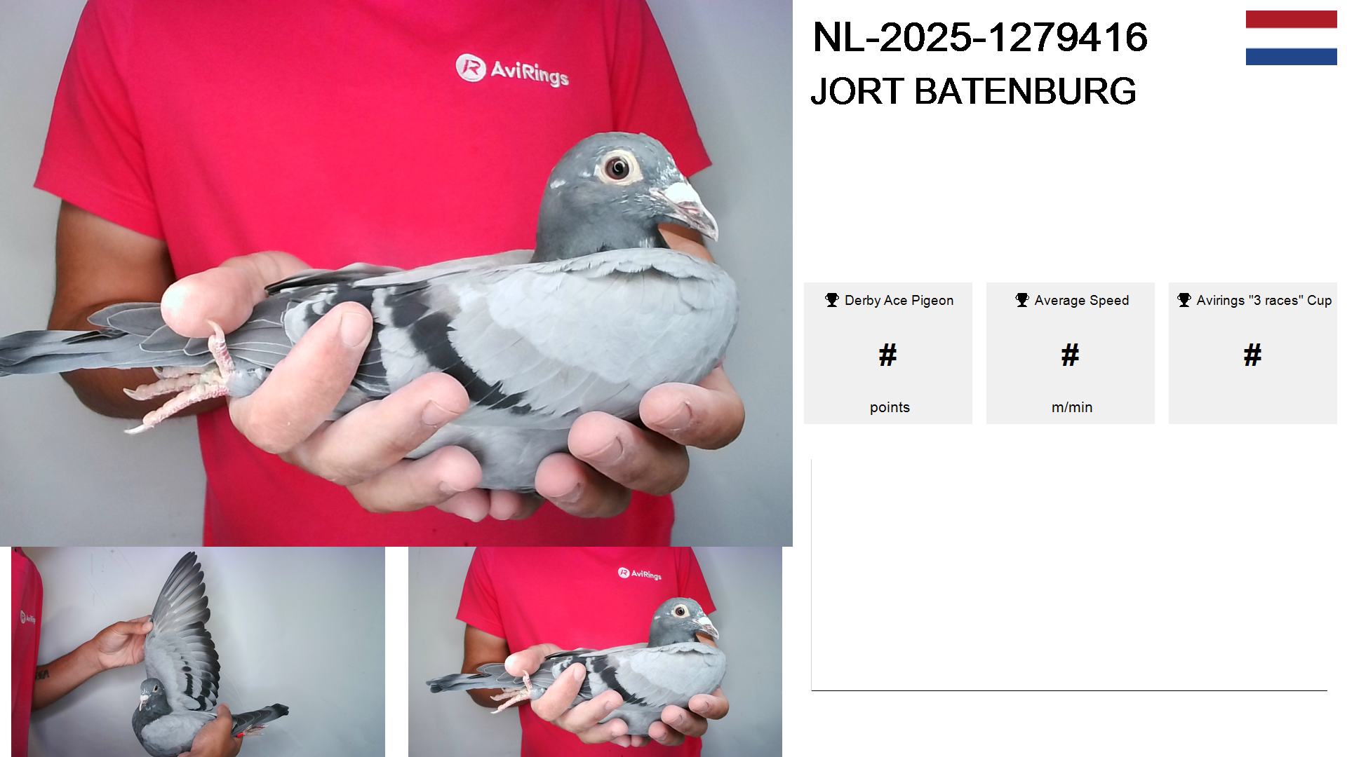 | Race | Position | Number of pigeons | Percent | Speed | Distance |