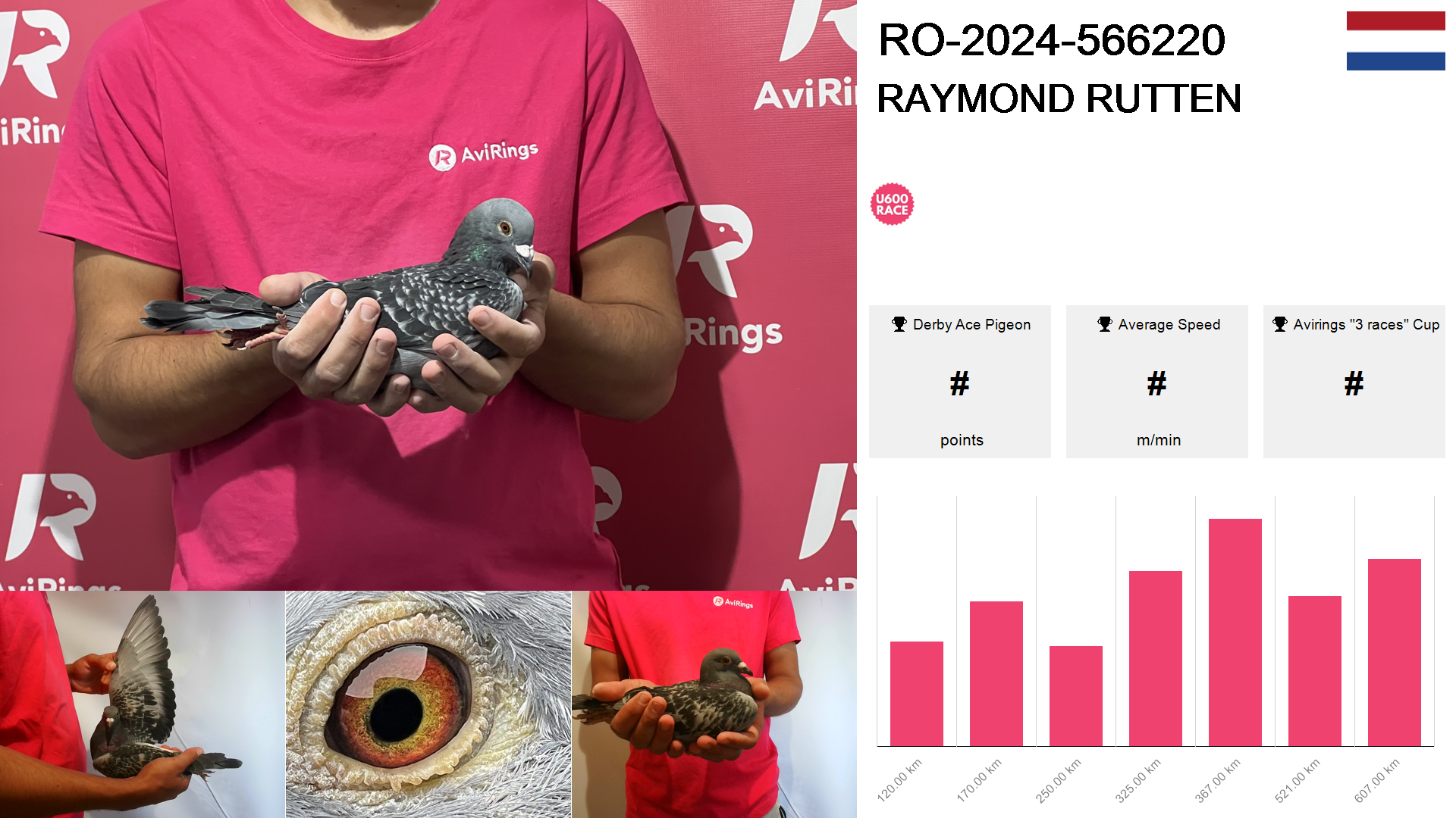 | Race | Position | Number of pigeons | Percent | Speed | Distance |
