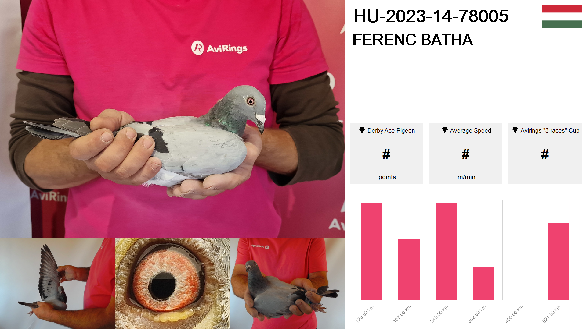 | Race | Position | Number of pigeons | Percent | Speed | Distance |
