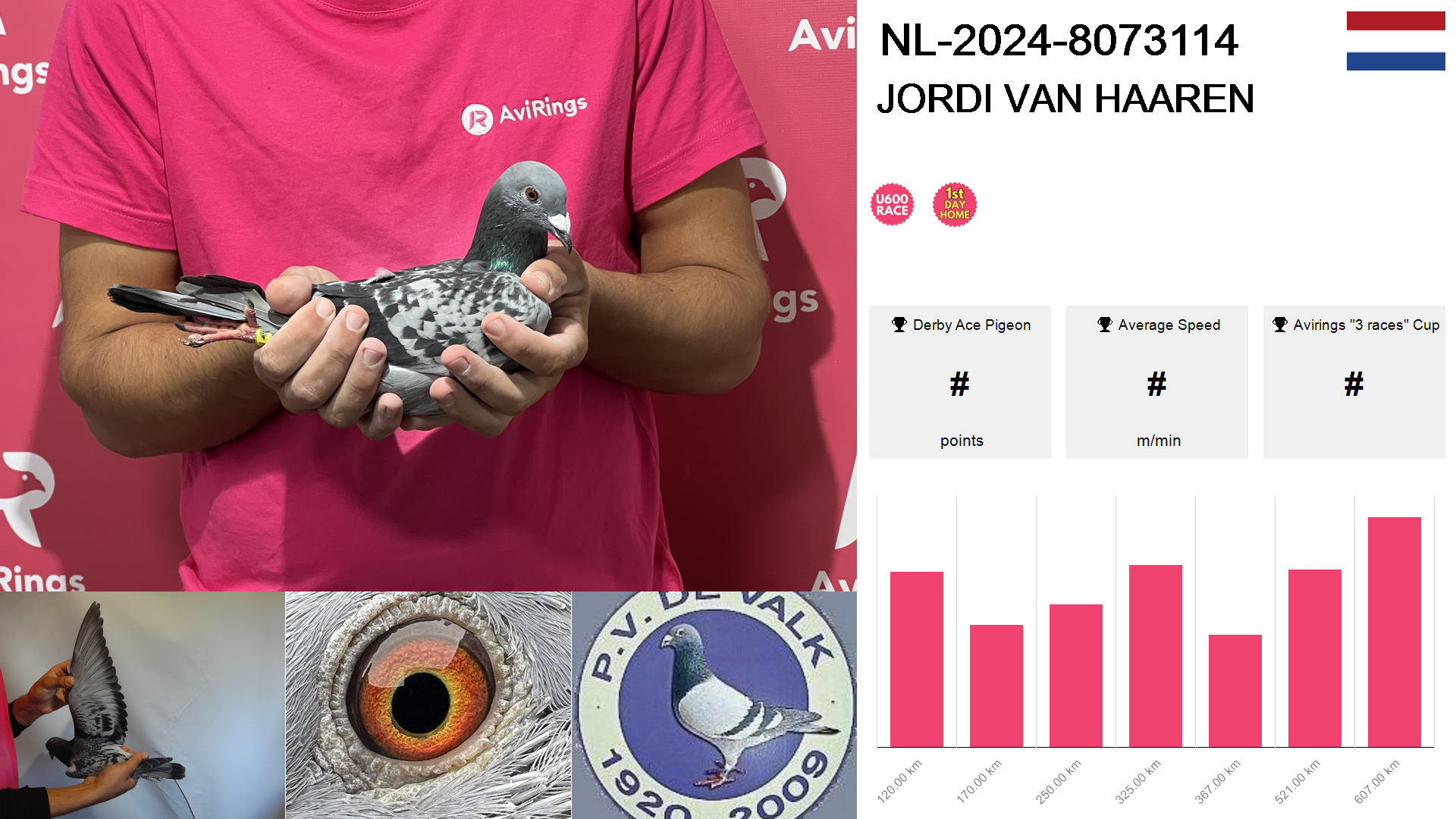 | Race | Position | Number of pigeons | Percent | Speed | Distance |