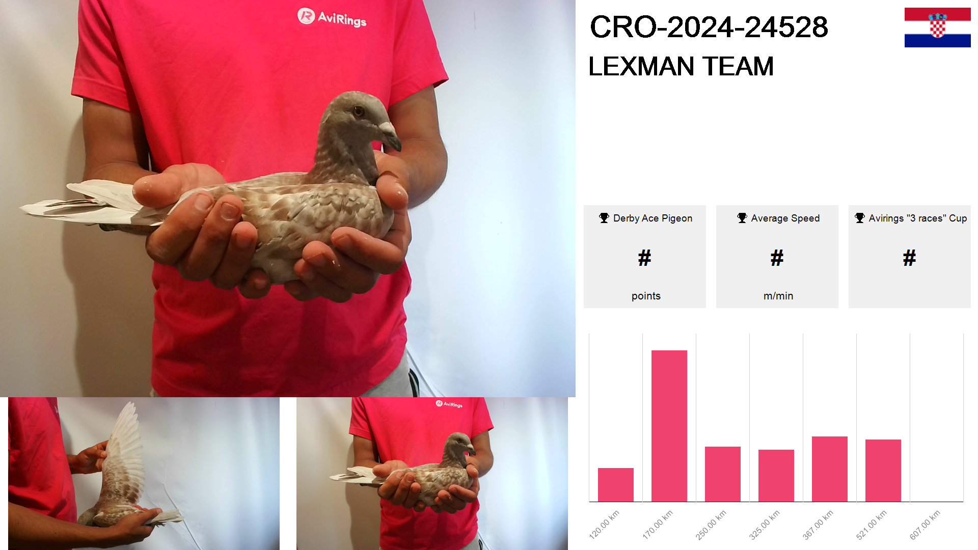 | Race | Position | Number of pigeons | Percent | Speed | Distance |