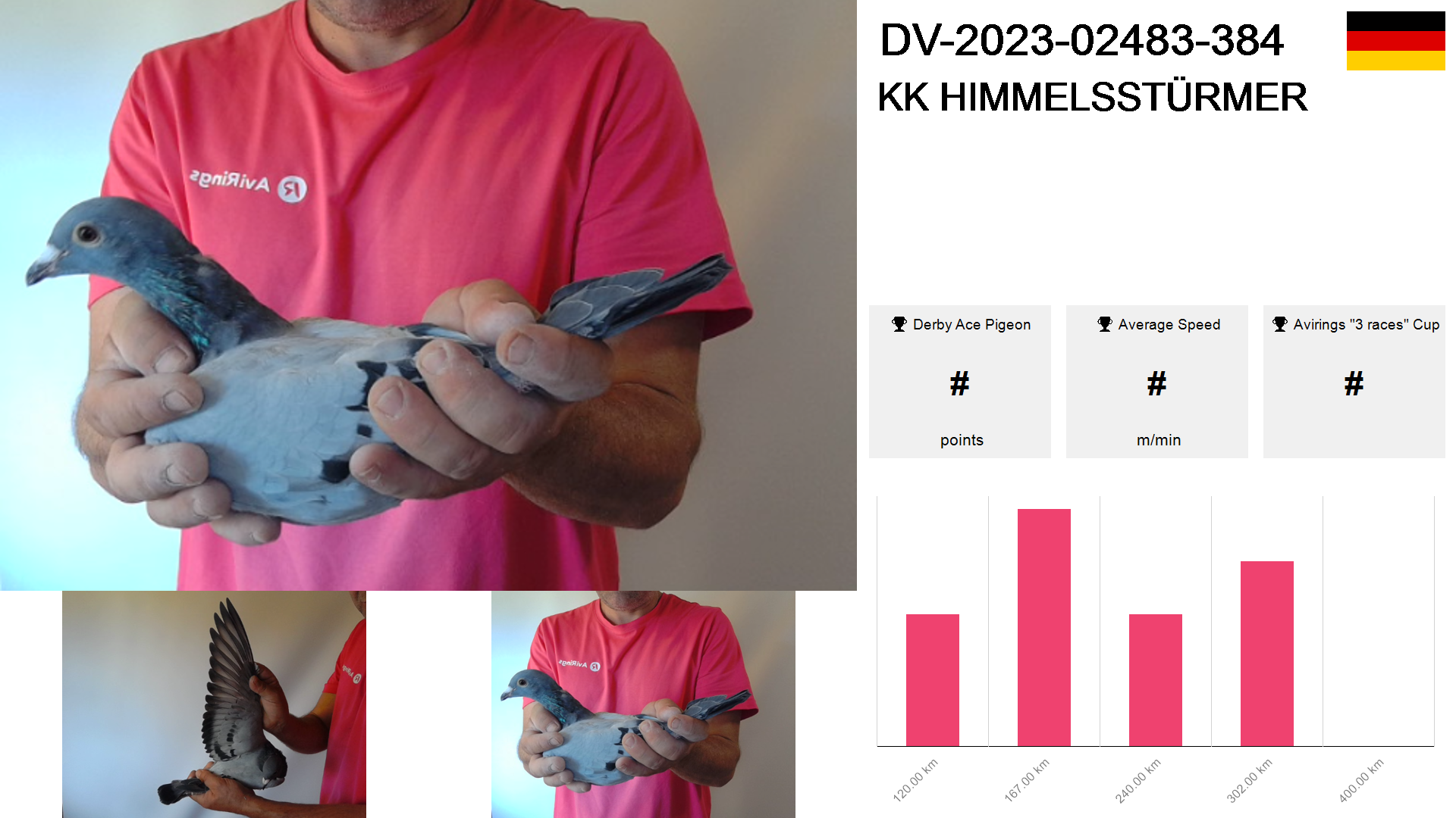 | Race | Position | Number of pigeons | Percent | Speed | Distance |