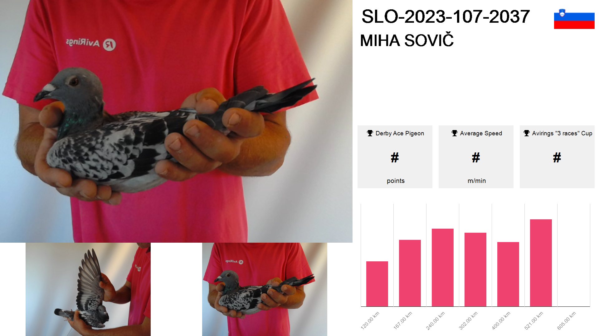| Race | Position | Number of pigeons | Percent | Speed | Distance |