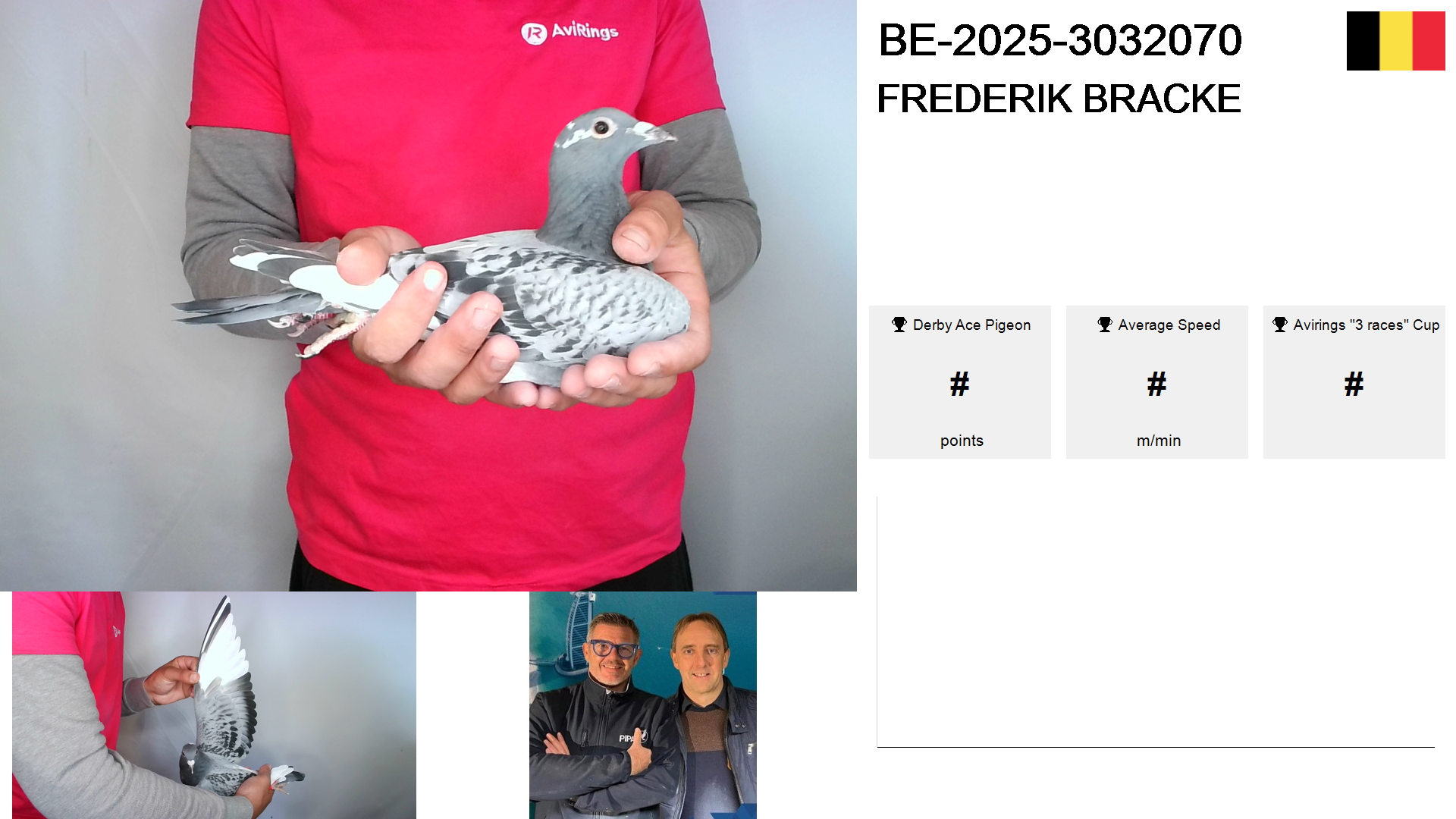 | Race | Position | Number of pigeons | Percent | Speed | Distance |