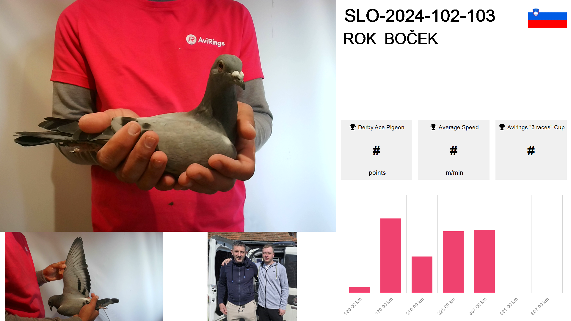 | Race | Position | Number of pigeons | Percent | Speed | Distance |