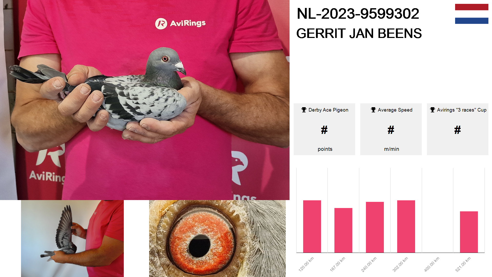 | Race | Position | Number of pigeons | Percent | Speed | Distance |
