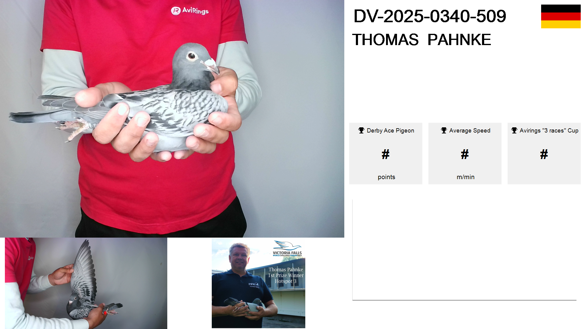 | Race | Position | Number of pigeons | Percent | Speed | Distance |