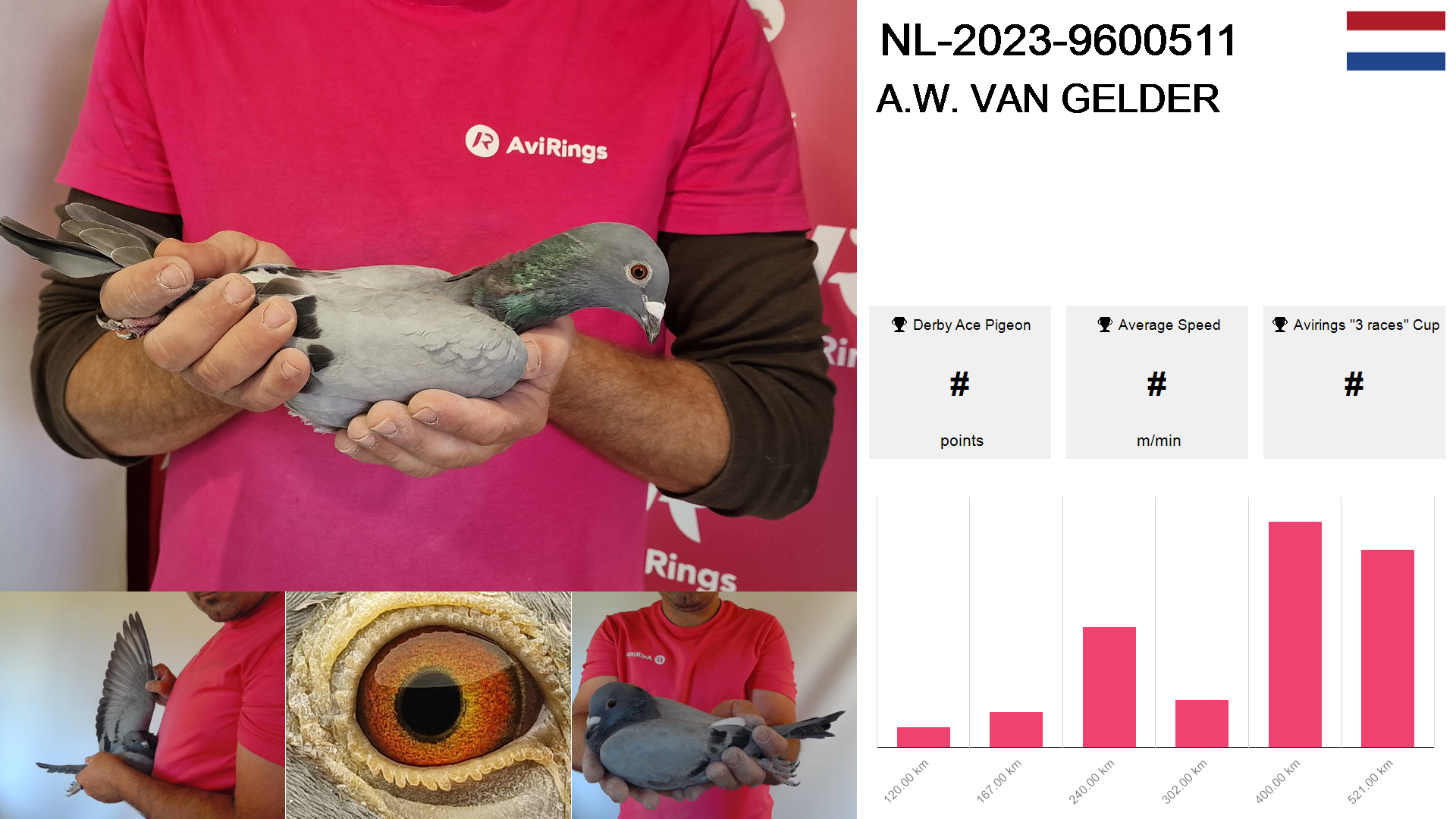 | Race | Position | Number of pigeons | Percent | Speed | Distance |
