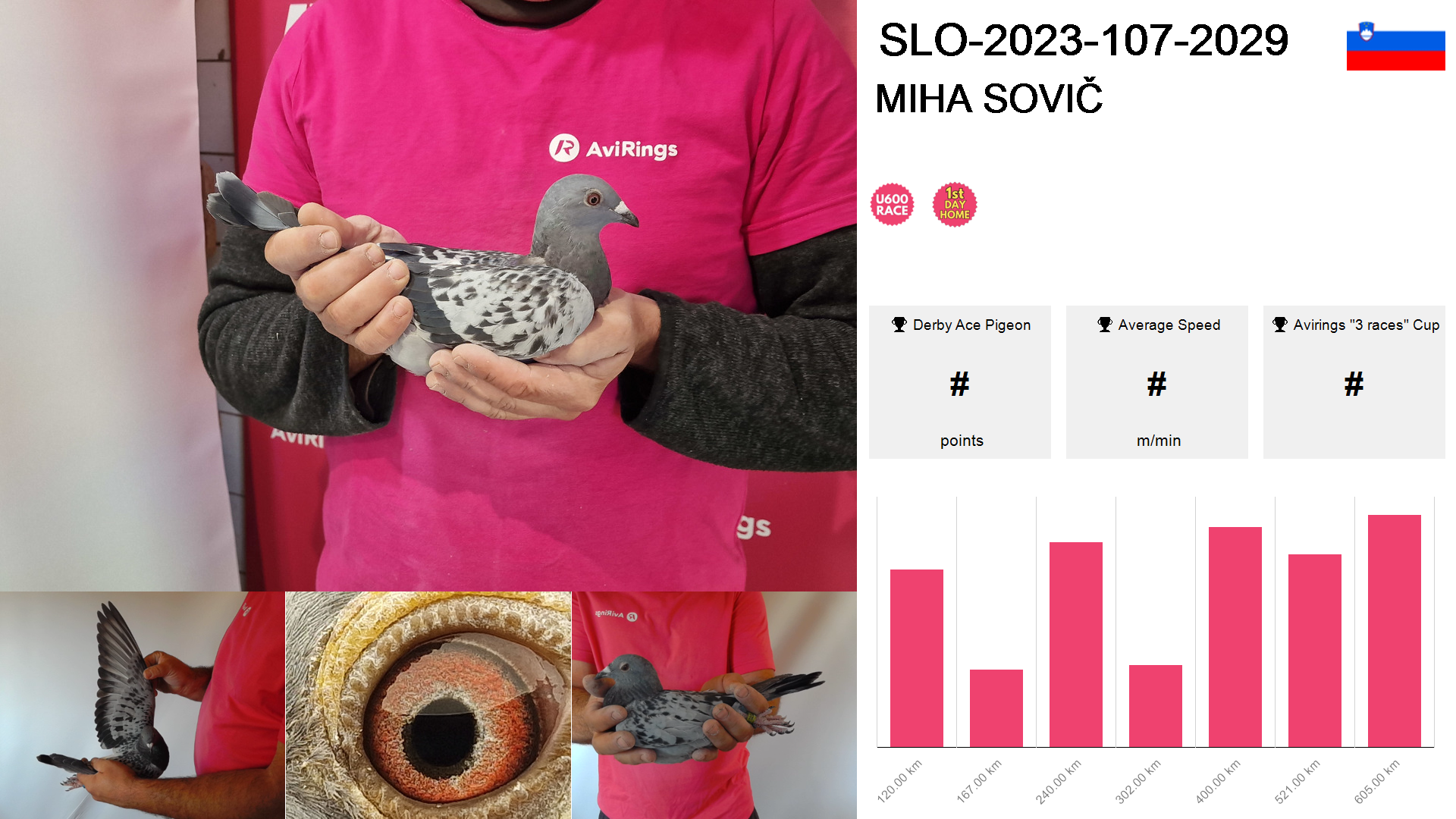 | Race | Position | Number of pigeons | Percent | Speed | Distance |