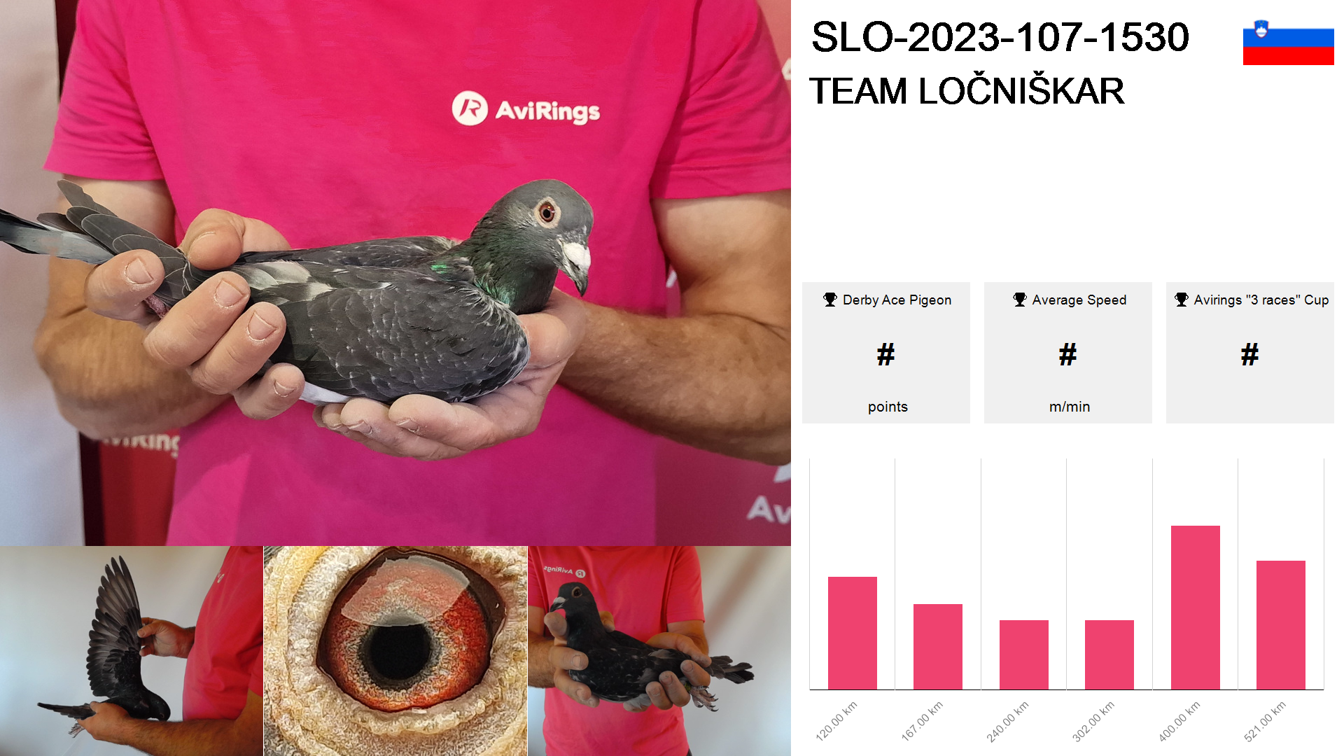 | Race | Position | Number of pigeons | Percent | Speed | Distance |