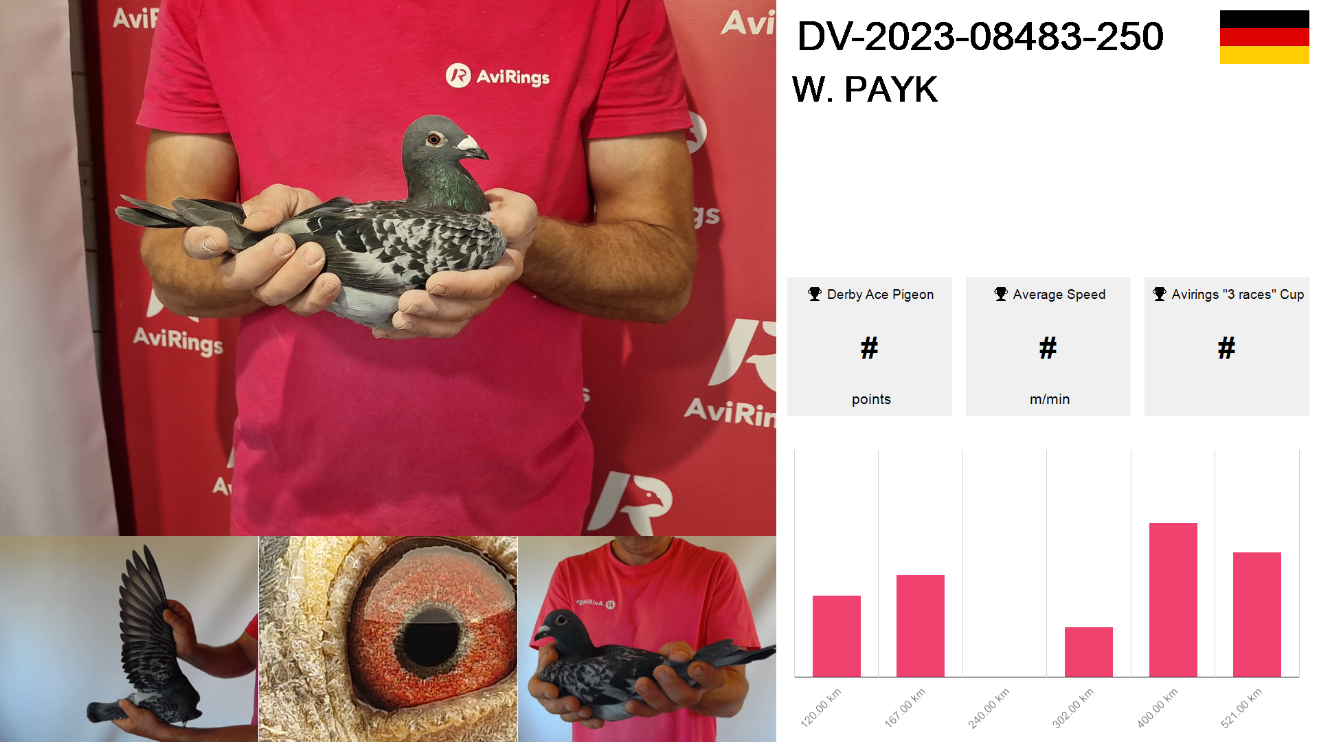 | Race | Position | Number of pigeons | Percent | Speed | Distance |