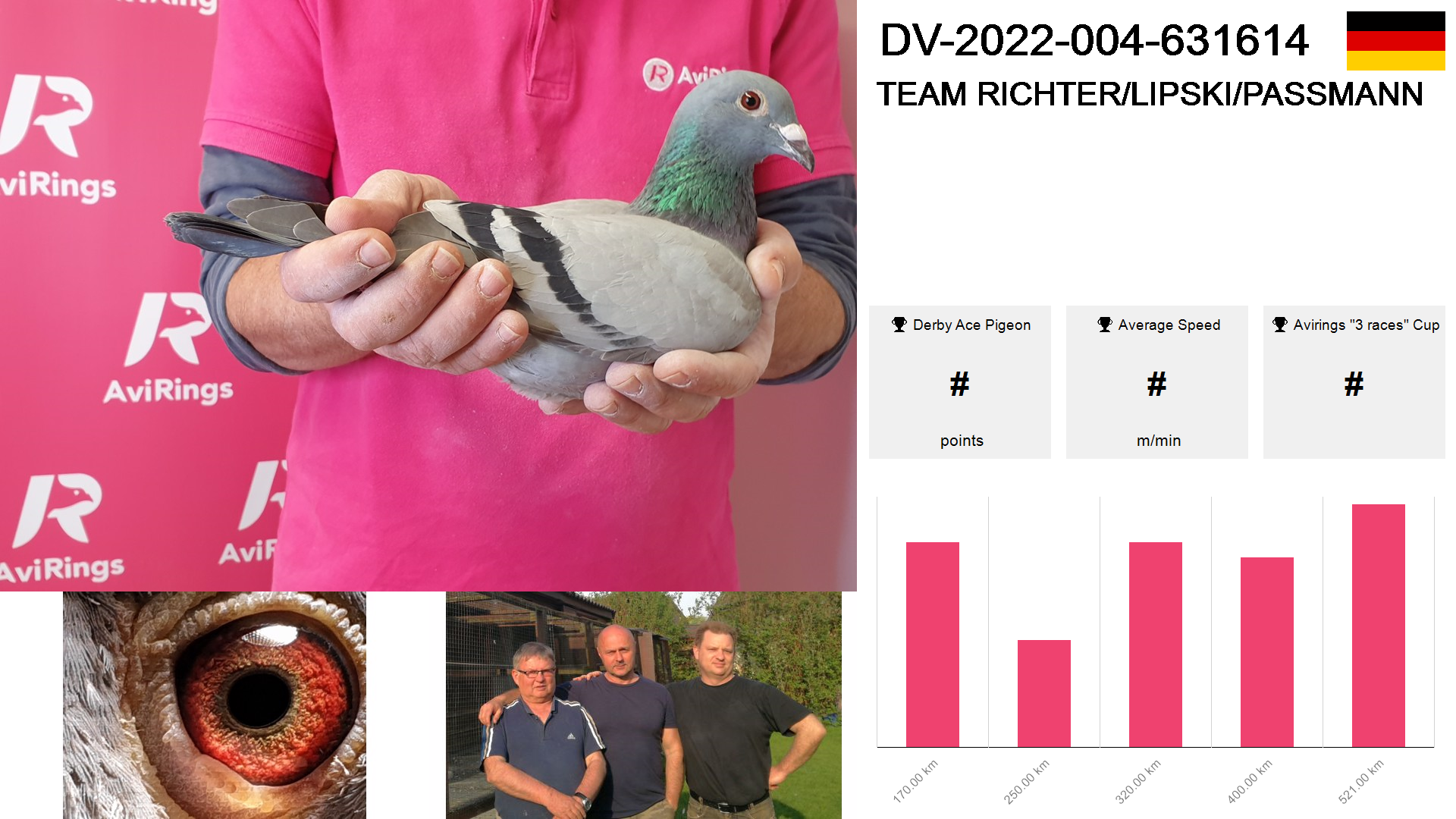 | Race | Position | Number of pigeons | Percent | Speed | Distance |