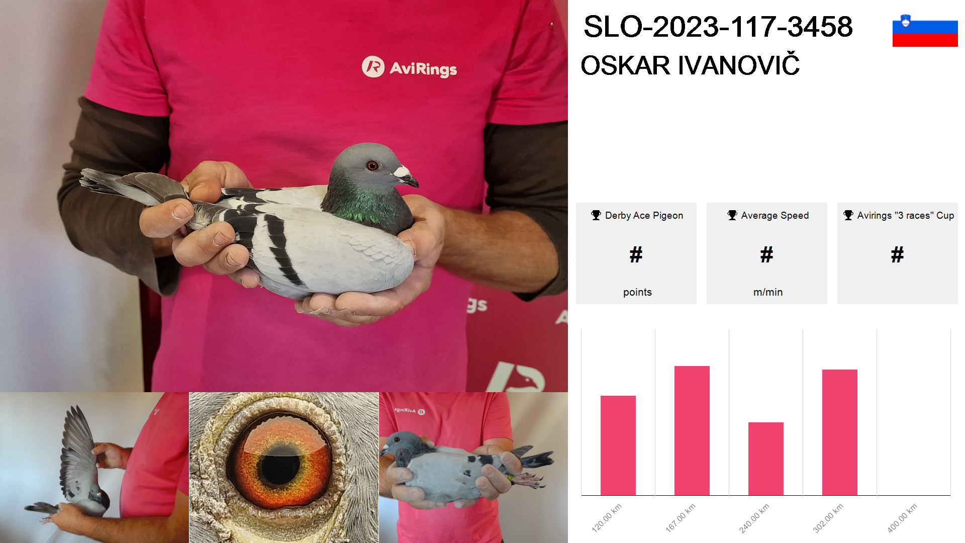 | Race | Position | Number of pigeons | Percent | Speed | Distance |