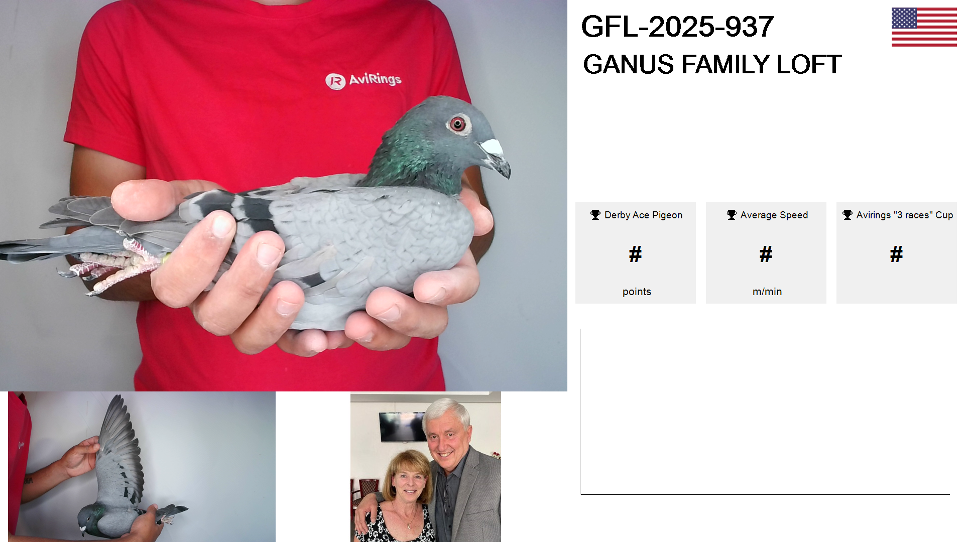 | Race | Position | Number of pigeons | Percent | Speed | Distance |