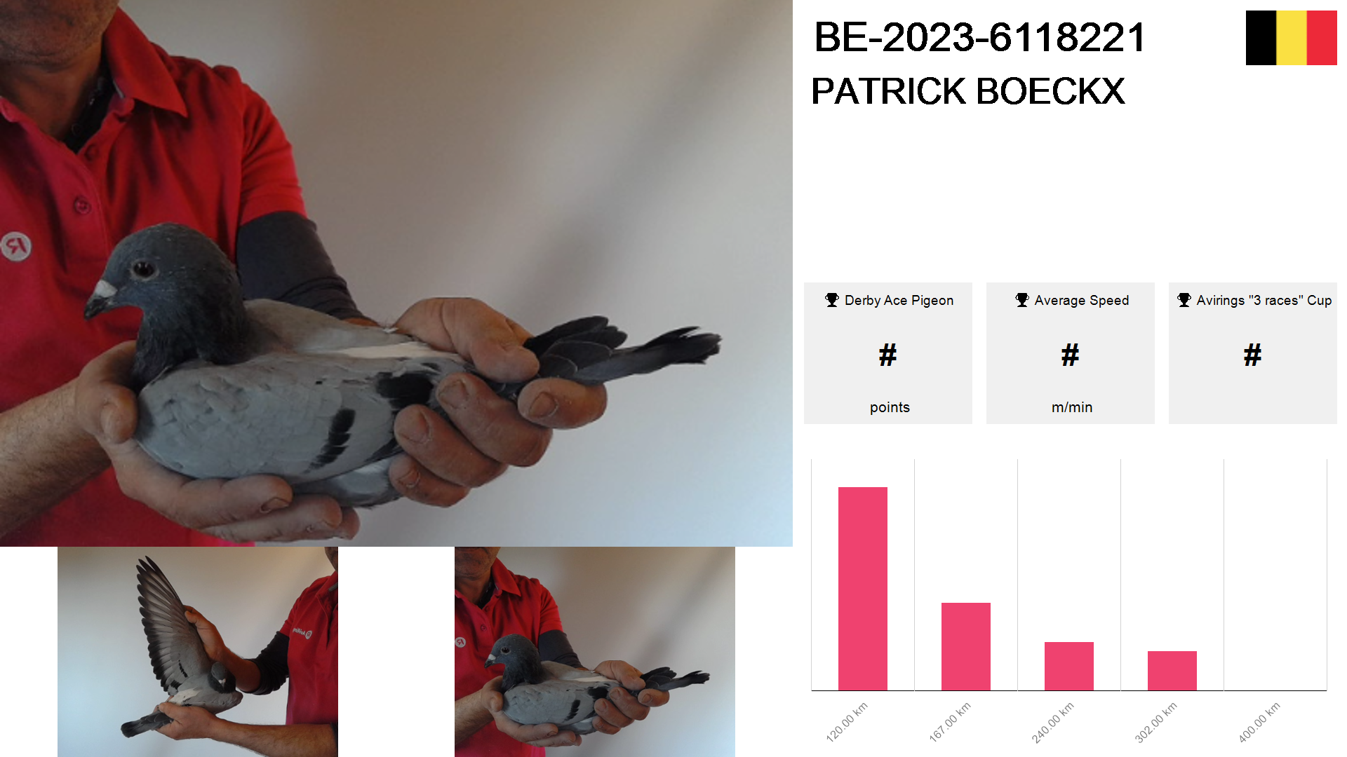 | Race | Position | Number of pigeons | Percent | Speed | Distance |