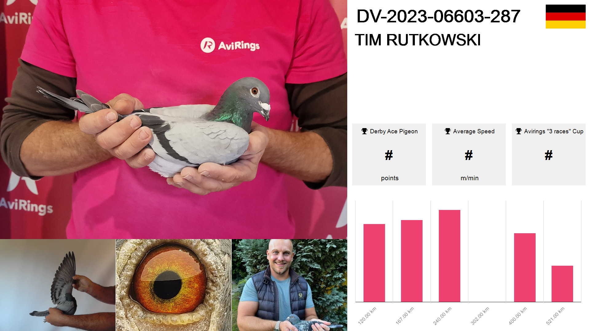 | Race | Position | Number of pigeons | Percent | Speed | Distance |