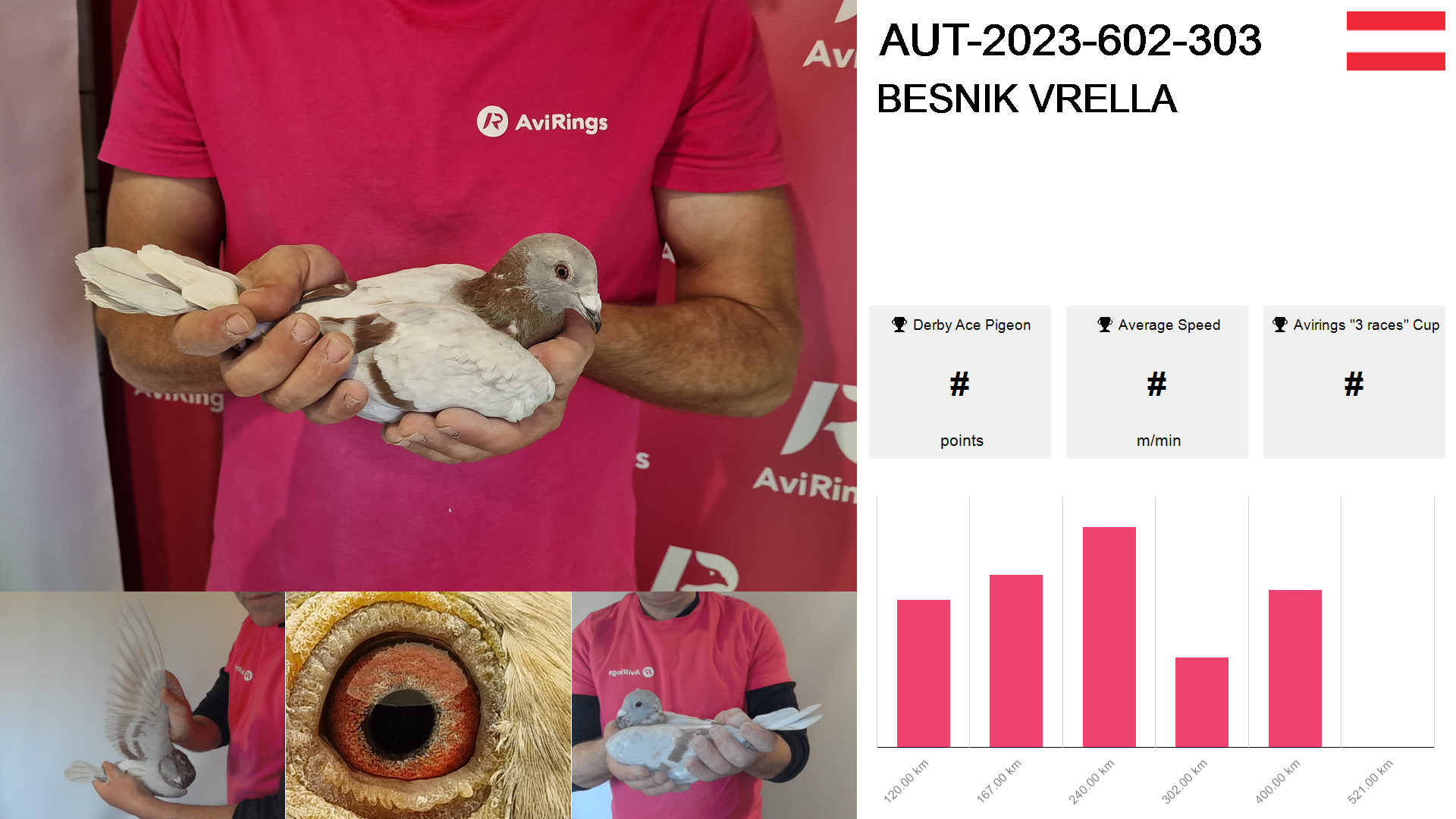 | Race | Position | Number of pigeons | Percent | Speed | Distance |