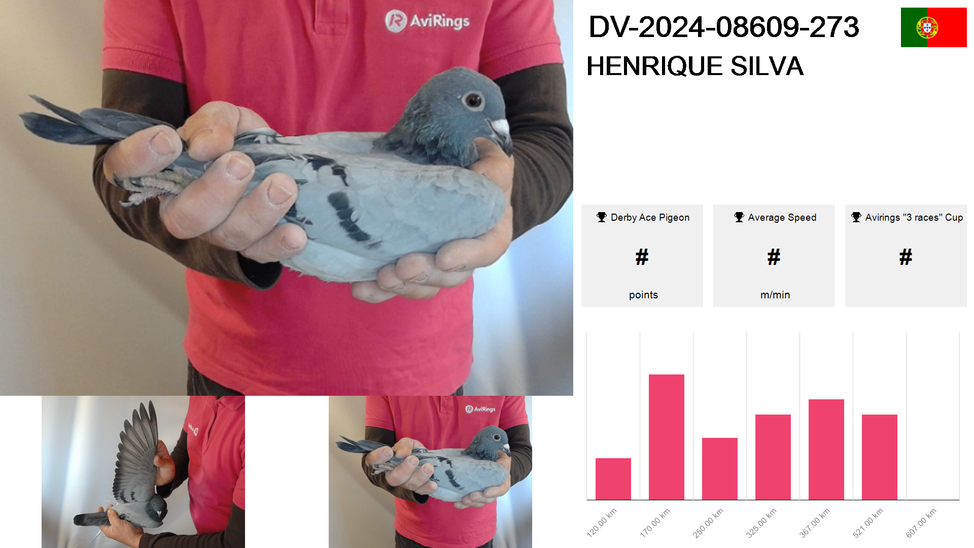 | Race | Position | Number of pigeons | Percent | Speed | Distance |