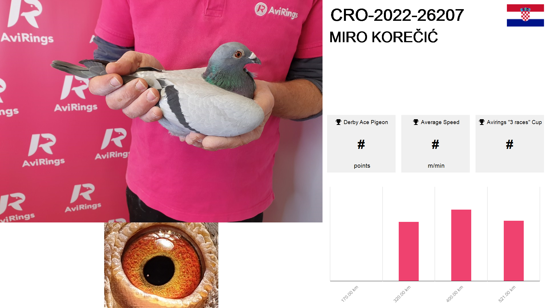 | Race | Position | Number of pigeons | Percent | Speed | Distance |