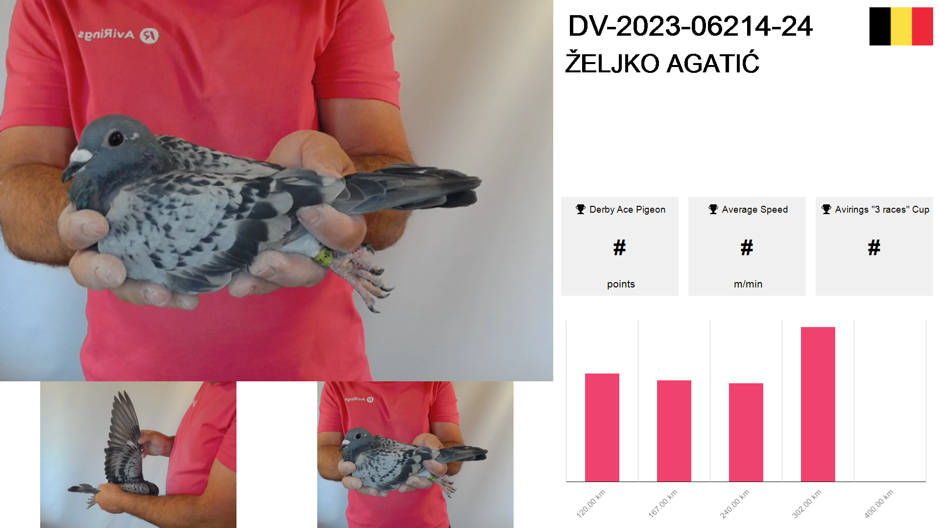 | Race | Position | Number of pigeons | Percent | Speed | Distance |