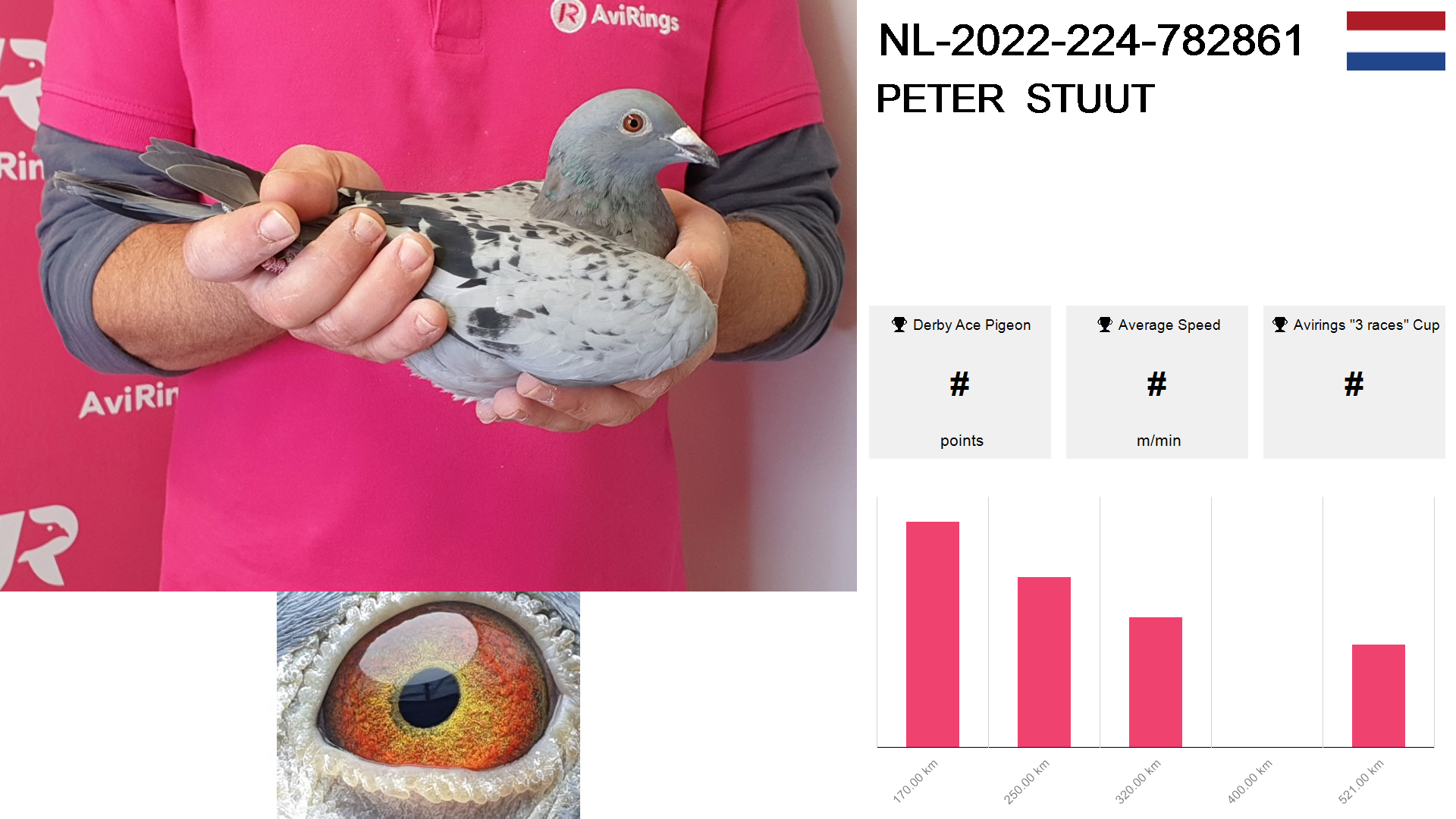 | Race | Position | Number of pigeons | Percent | Speed | Distance |