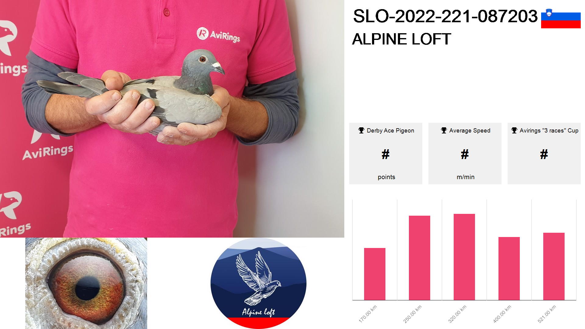 | Race | Position | Number of pigeons | Percent | Speed | Distance |