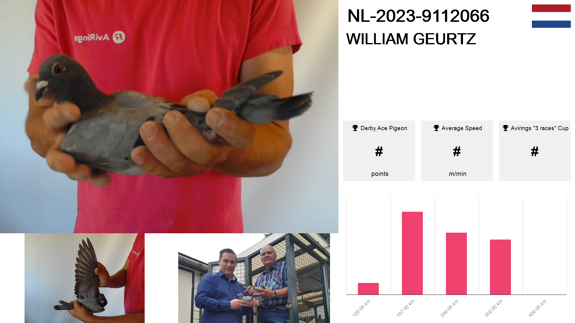 | Race | Position | Number of pigeons | Percent | Speed | Distance |