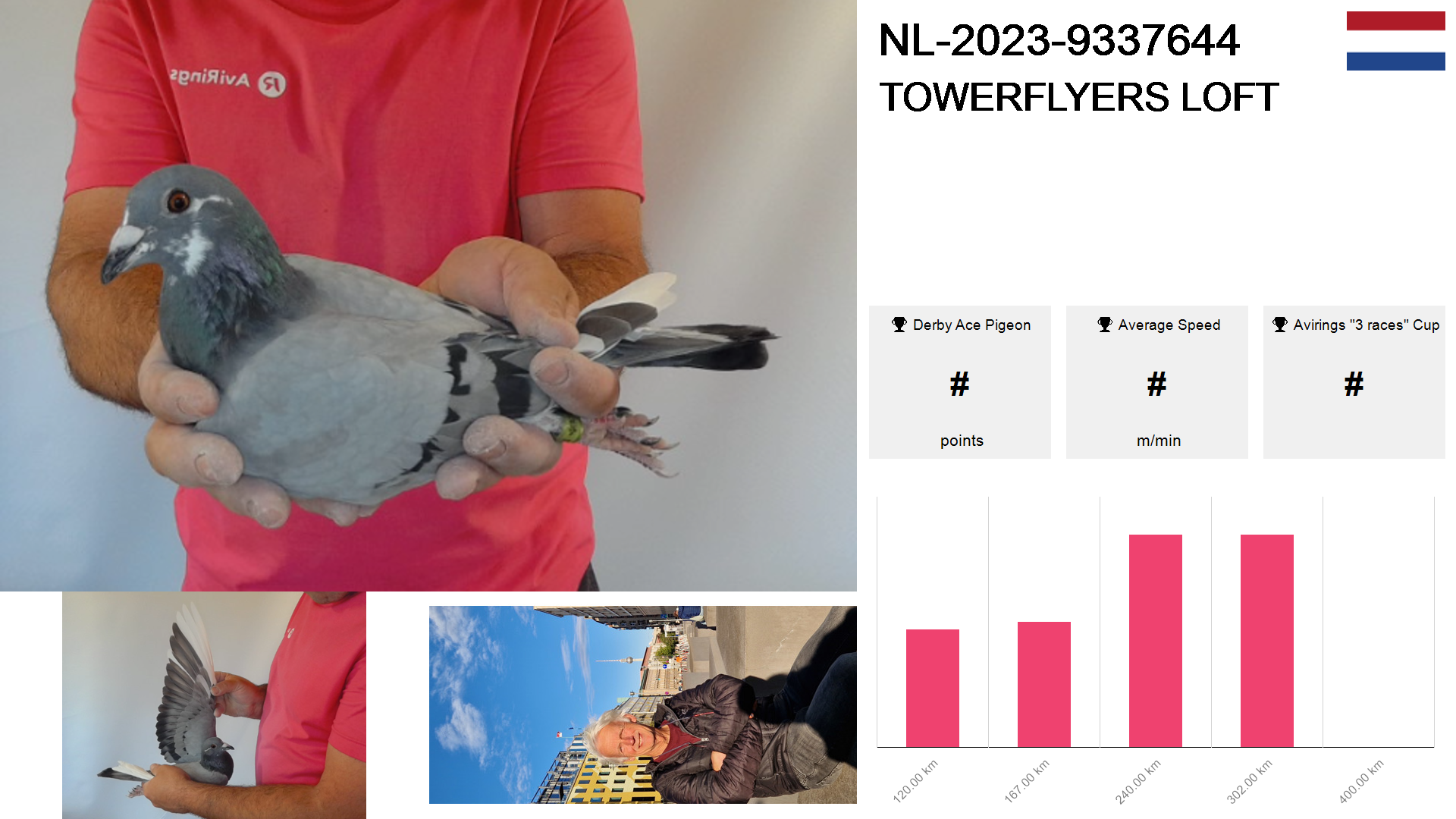 | Race | Position | Number of pigeons | Percent | Speed | Distance |