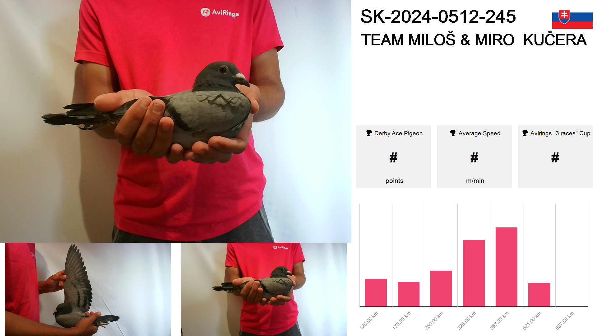 | Race | Position | Number of pigeons | Percent | Speed | Distance |