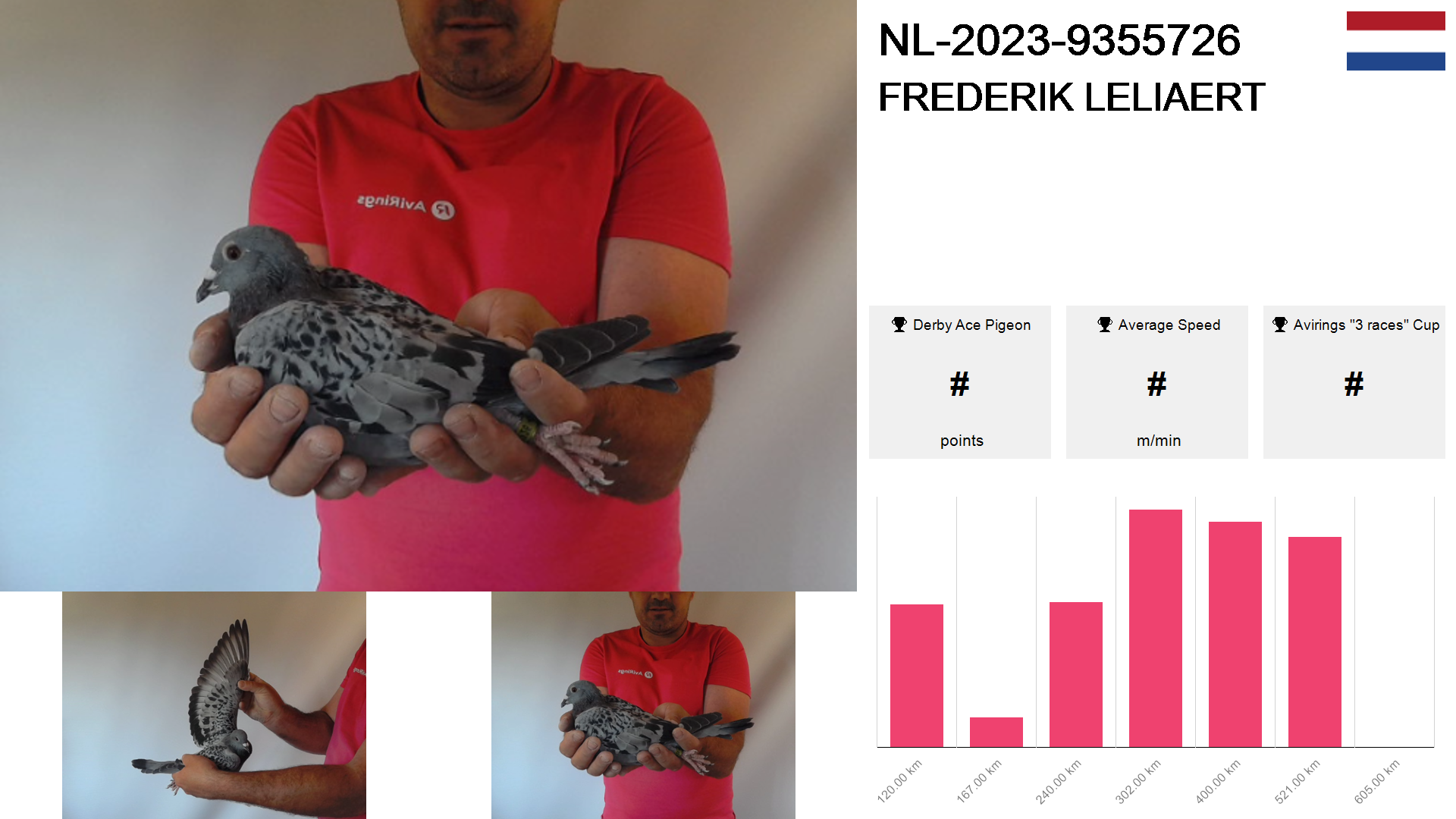 | Race | Position | Number of pigeons | Percent | Speed | Distance |